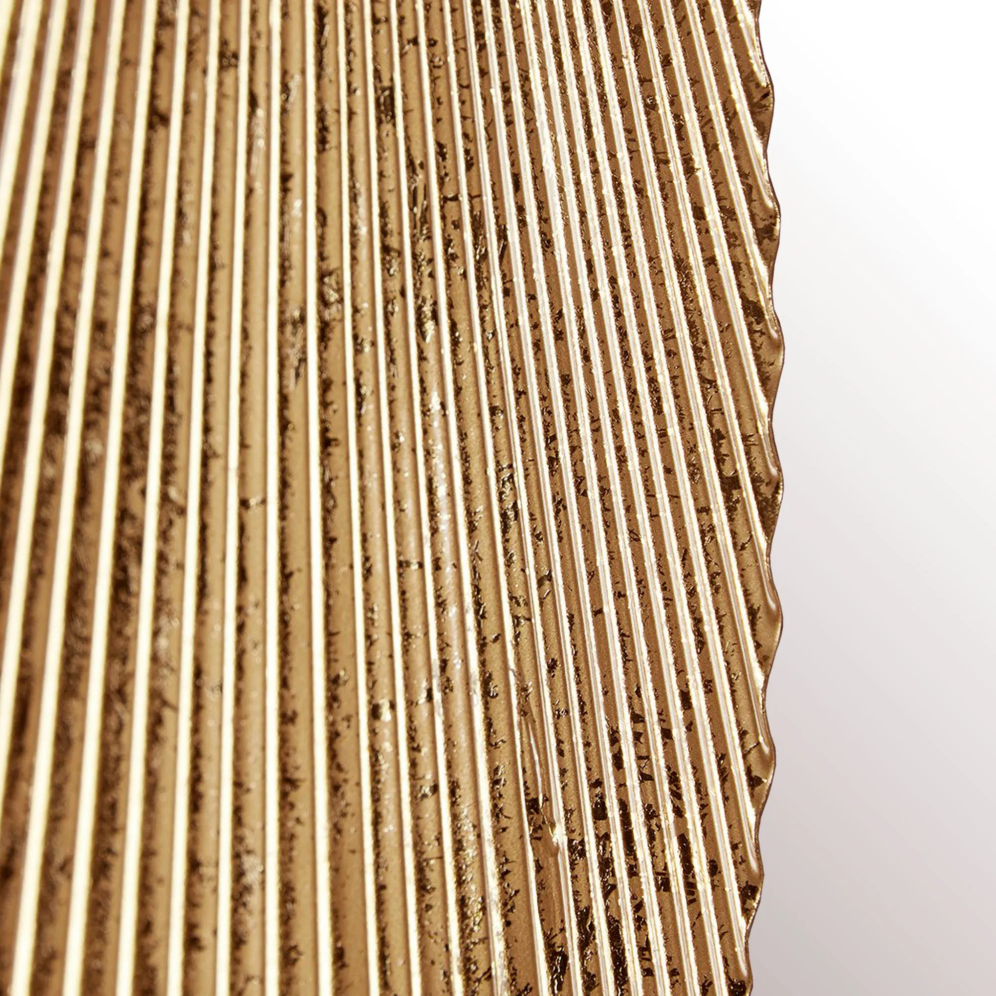 Be sure to choose how the Eclipse Wall Decor Set should be displayed. Simply place it together or separately for a minimalist look or vertically or horizontally for endless arrangements. Made of metal, this moon-shaped wall art has a metallic gold leaf finish with dimensional linear lines. Each piece is approx. 14"Wx0.5"Dx27.5"H.