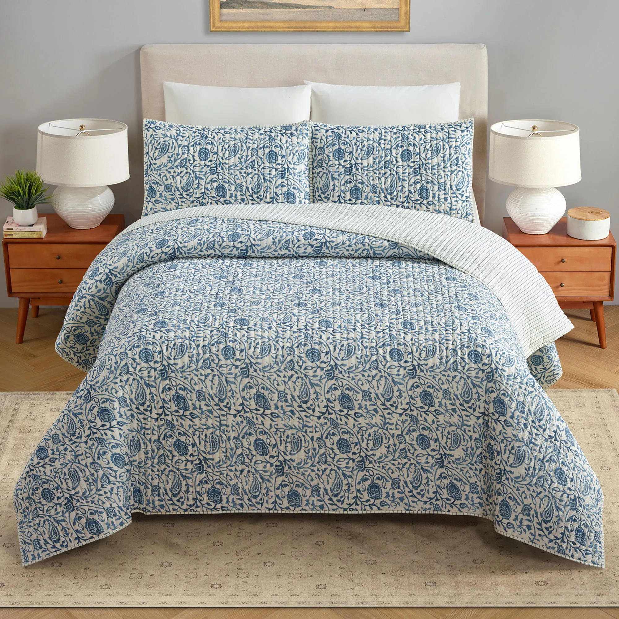 • Paisley quilt reverses to a pinstripe design