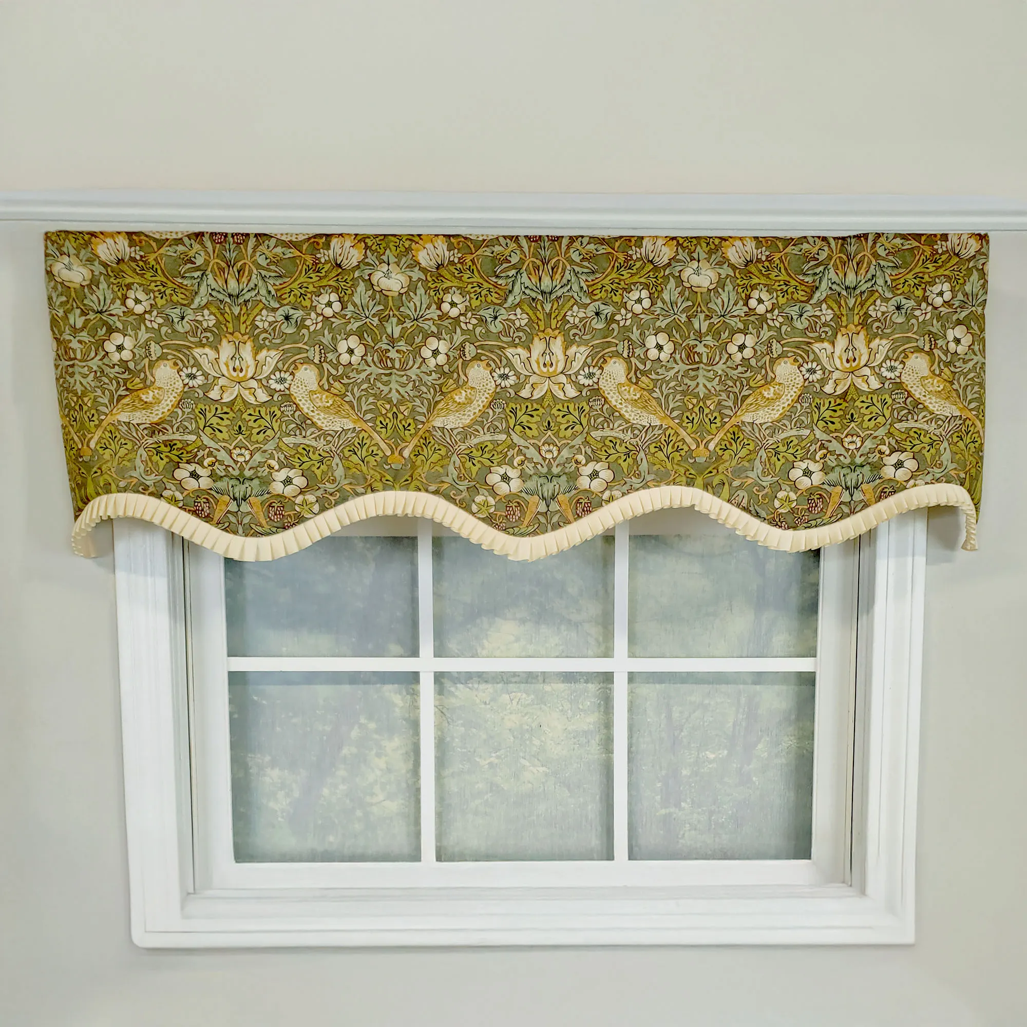 Edmonton Jacobean Floral and Bird Scalloped Window Valance