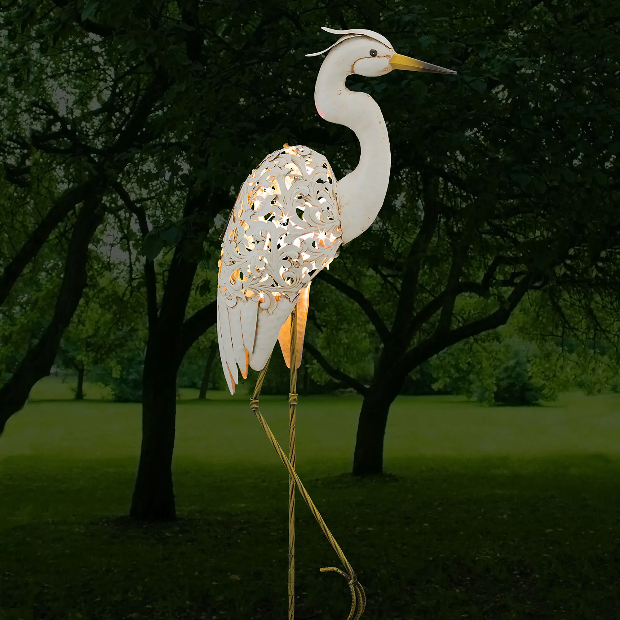 White Egret Solar Bird LED Lighted Outdoor Sculpture