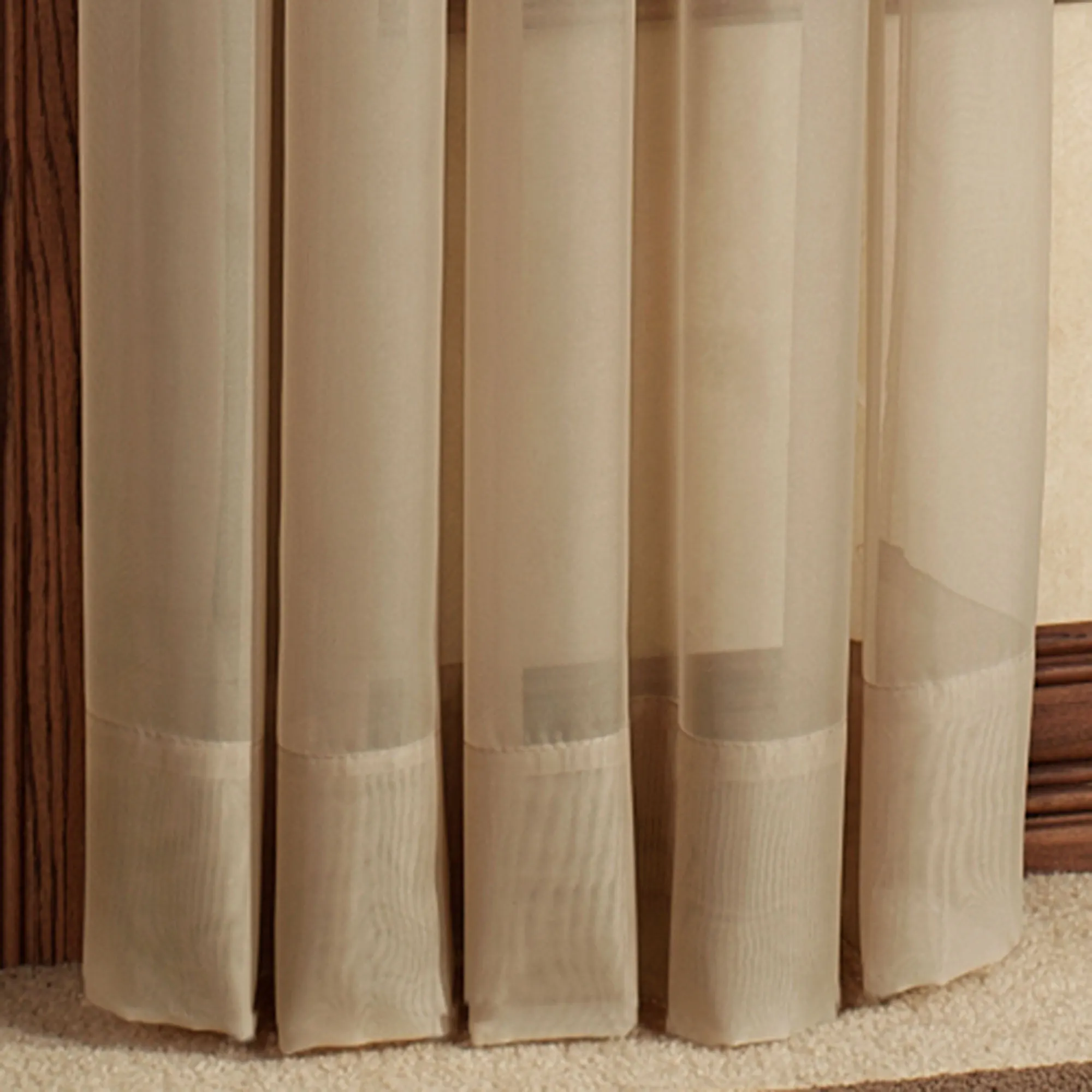 The Elegance Sheer Window Treatment is polyester voile. Imported.