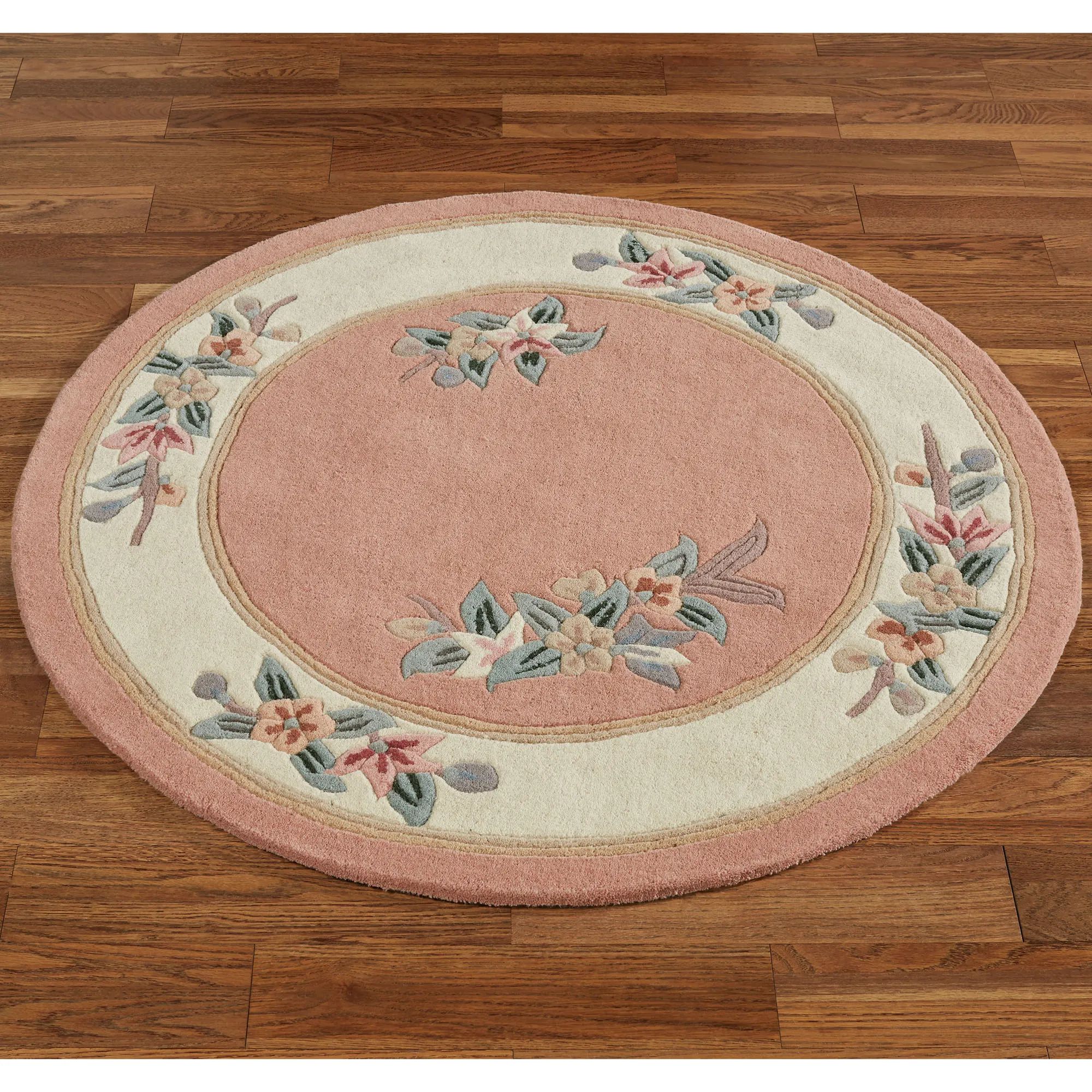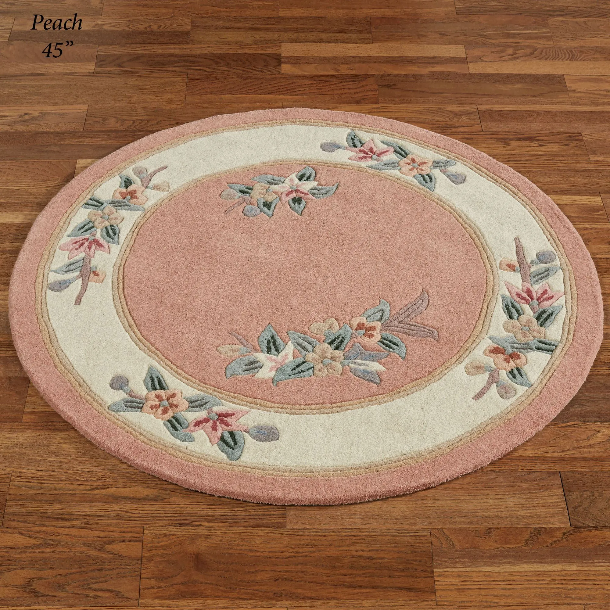 The Elegant Floral II Round Rug is wool with cotton-covered latex backing. Made in India.