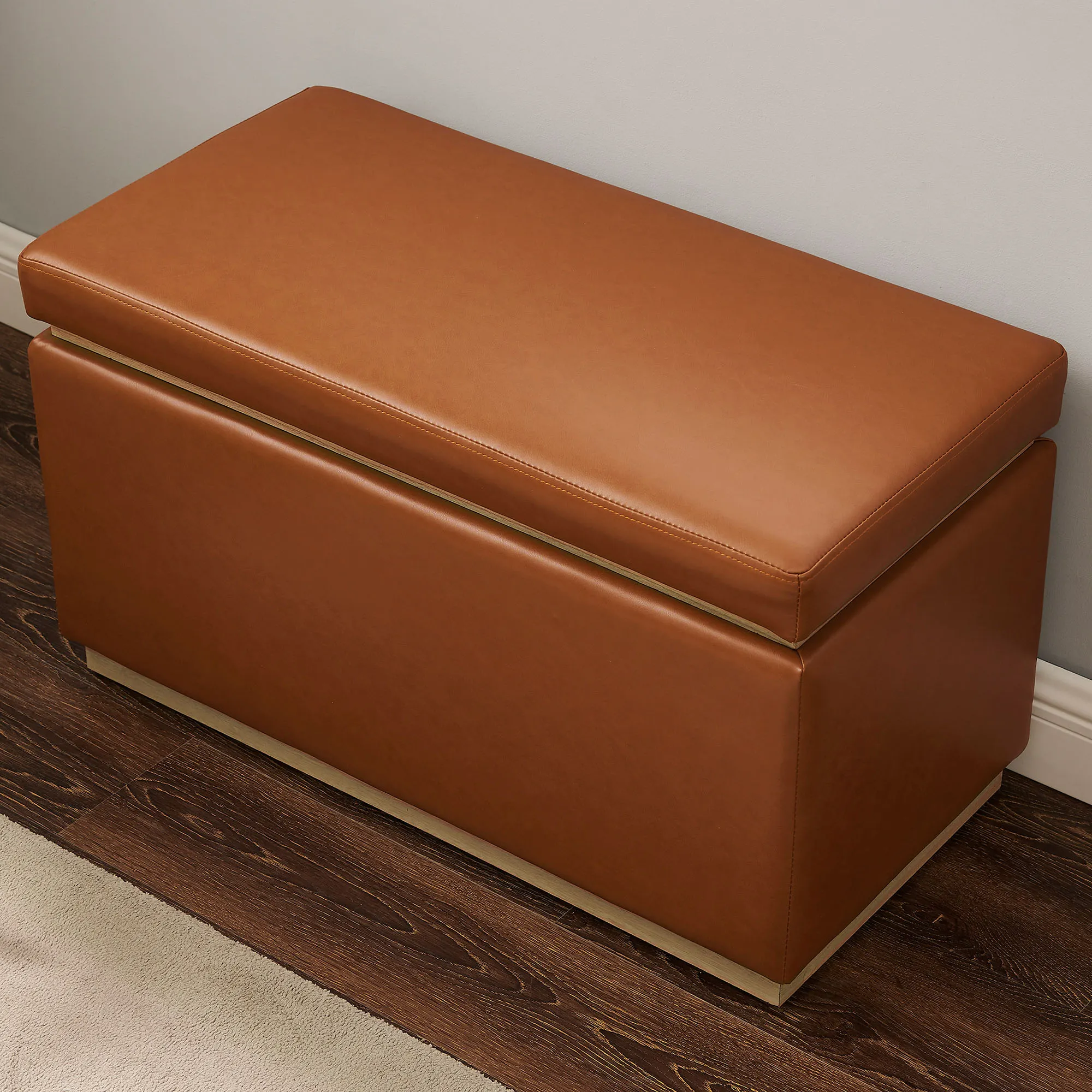 Eli Auburn Faux Leather Upholstered Rectangle Storage Bench