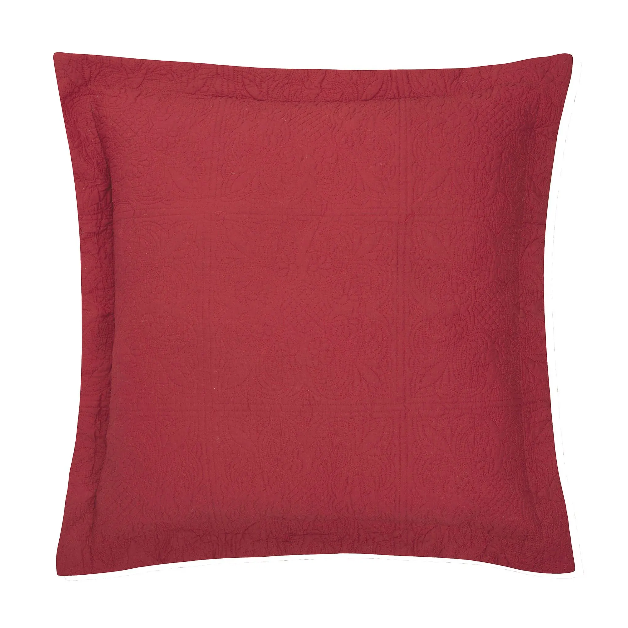 The tailored Flanged European Sham has intricate quilting, floral medallions, and a zipper closure.