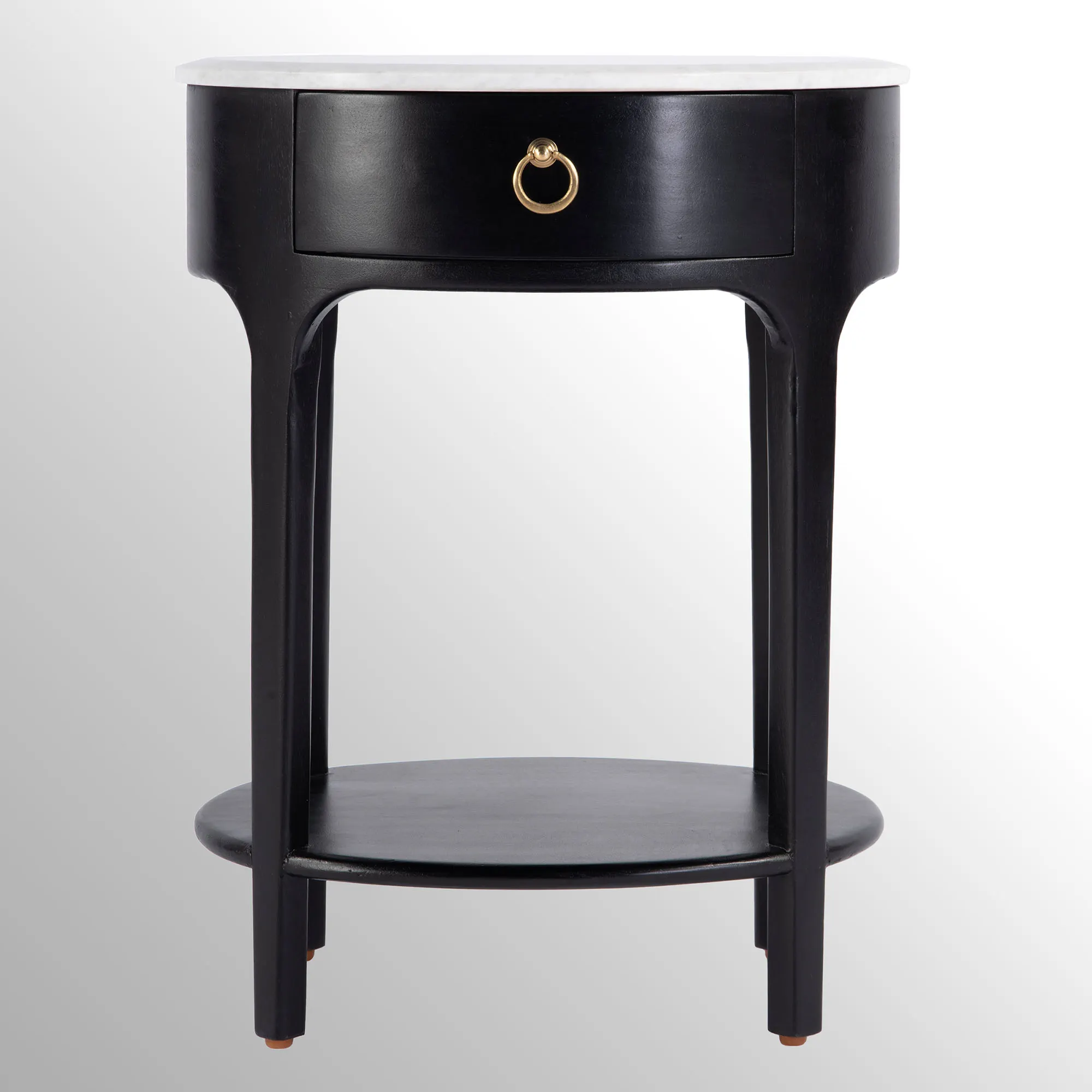 Ellen Black Oval Wooden Nightstand with Marble Top from Butler Specialty