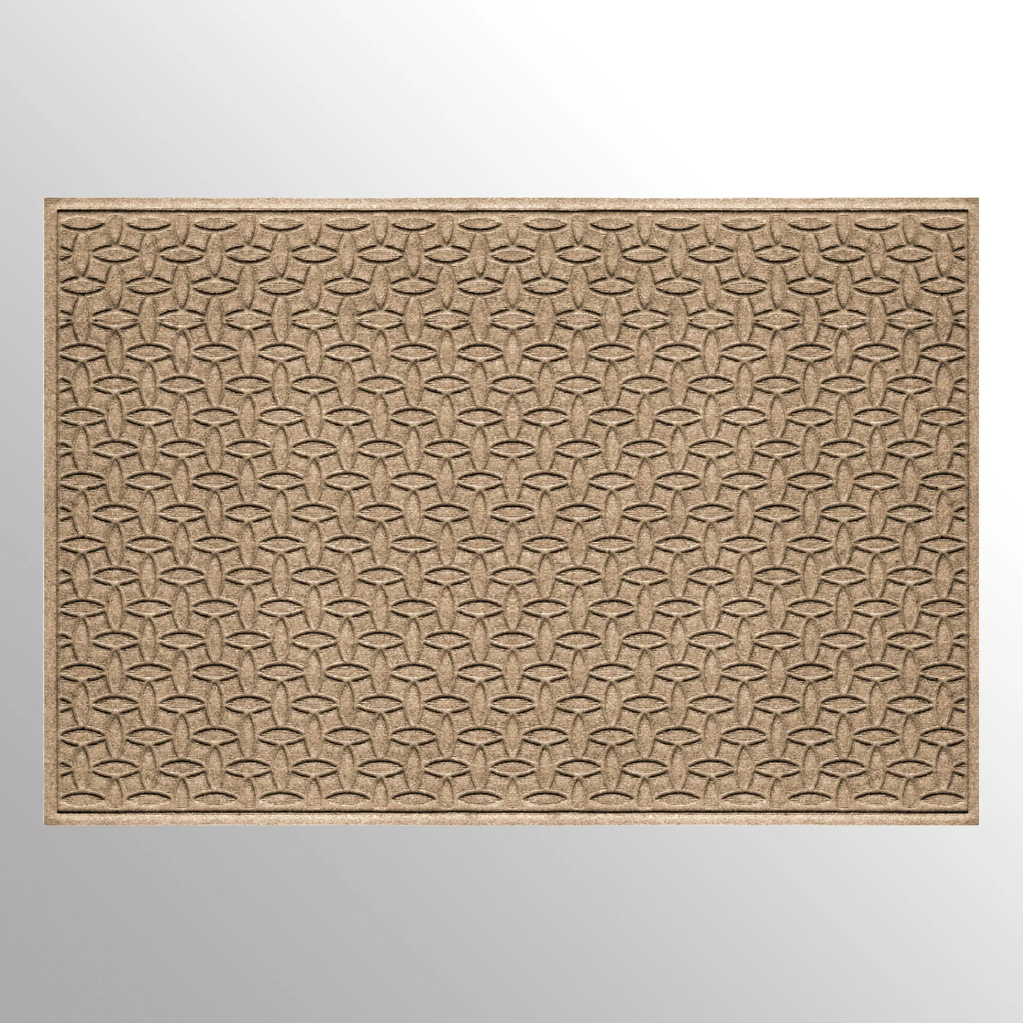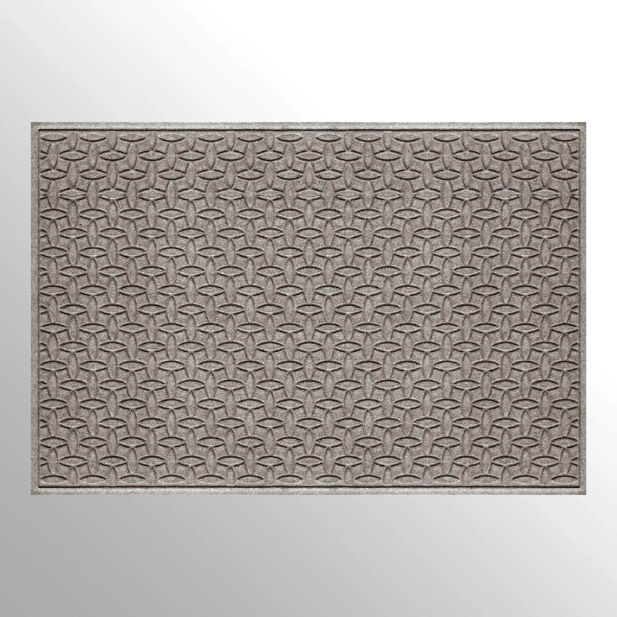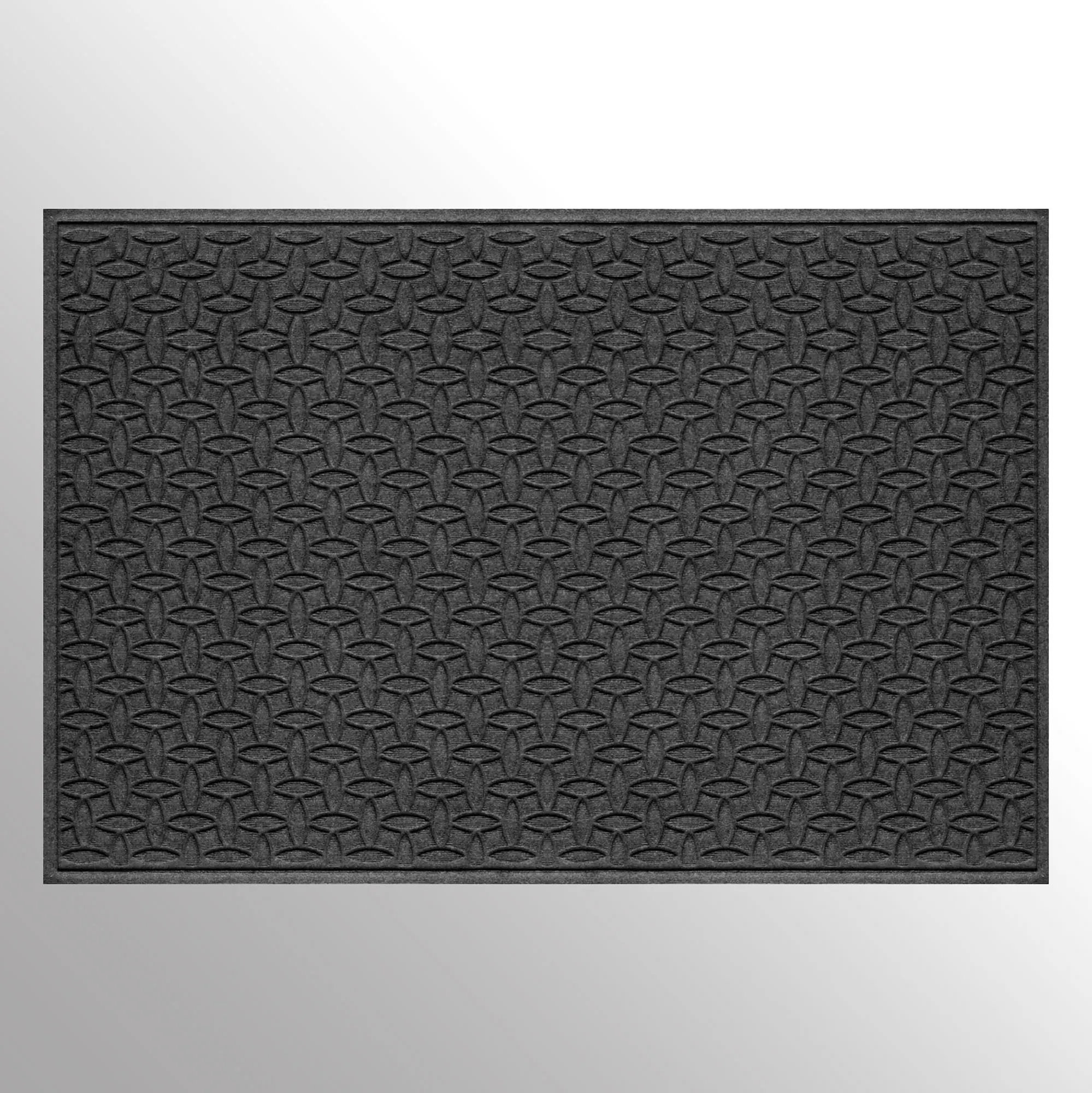 The Ellipse Indoor/Outdoor Extra-Large Mat transfixes your entryway with a captivating pattern. The antistatic PET polyester fiber floor accent has an all-over ellipse design, along with a nonskid SBR rubber backing that is slip-resistant and certified by the National Floor Safety Institute. The WaterHog(R) exclusive Water Dam border keeps dirt and water on the mat and not your floor. The premium-grade mat is mildew-, mold-, and rot-resistant. Specify Dark Brown, Burgundy, Charcoal, Dark Green, Gray, Khaki, Navy, or Slate Blue. Extra-large mat is 70"x45". Indoor use or outdoor use year round. Hose off to clean.