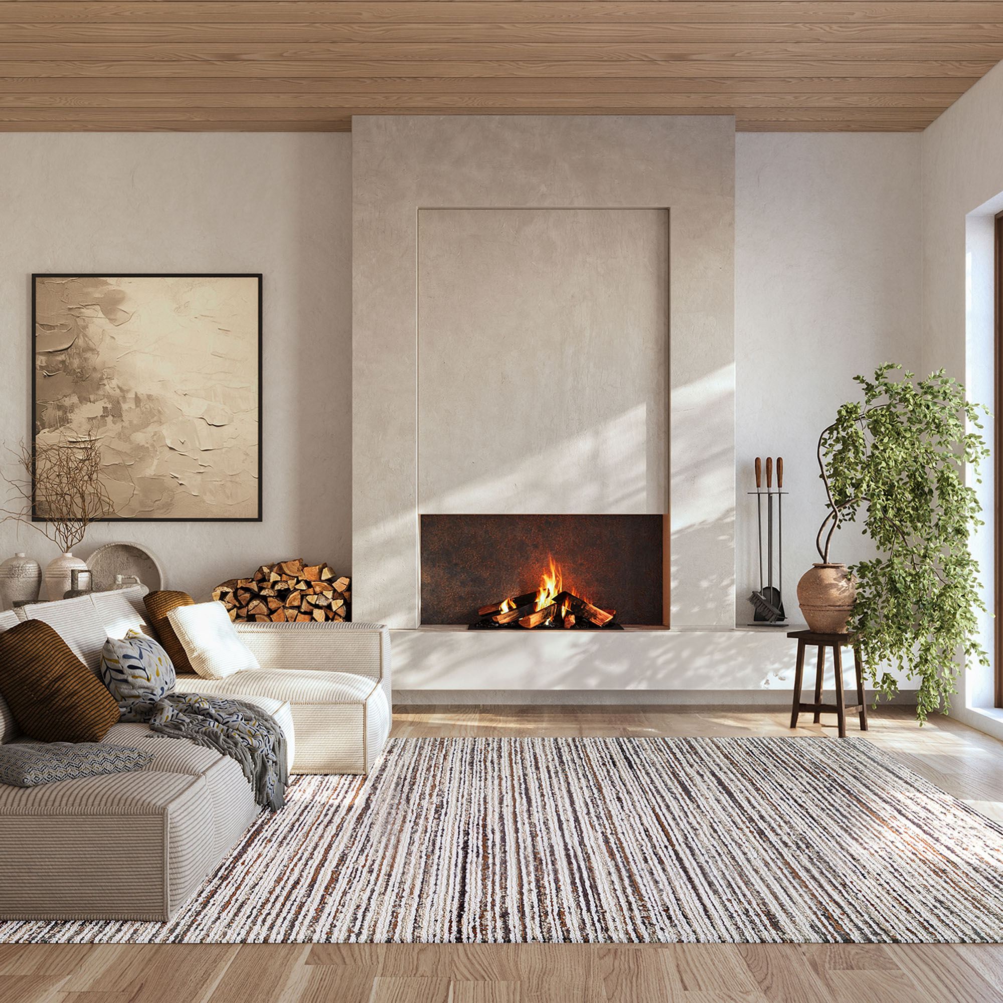Elwood Hand Knotted Wool Neutral Textured Stripe Area Rugs
