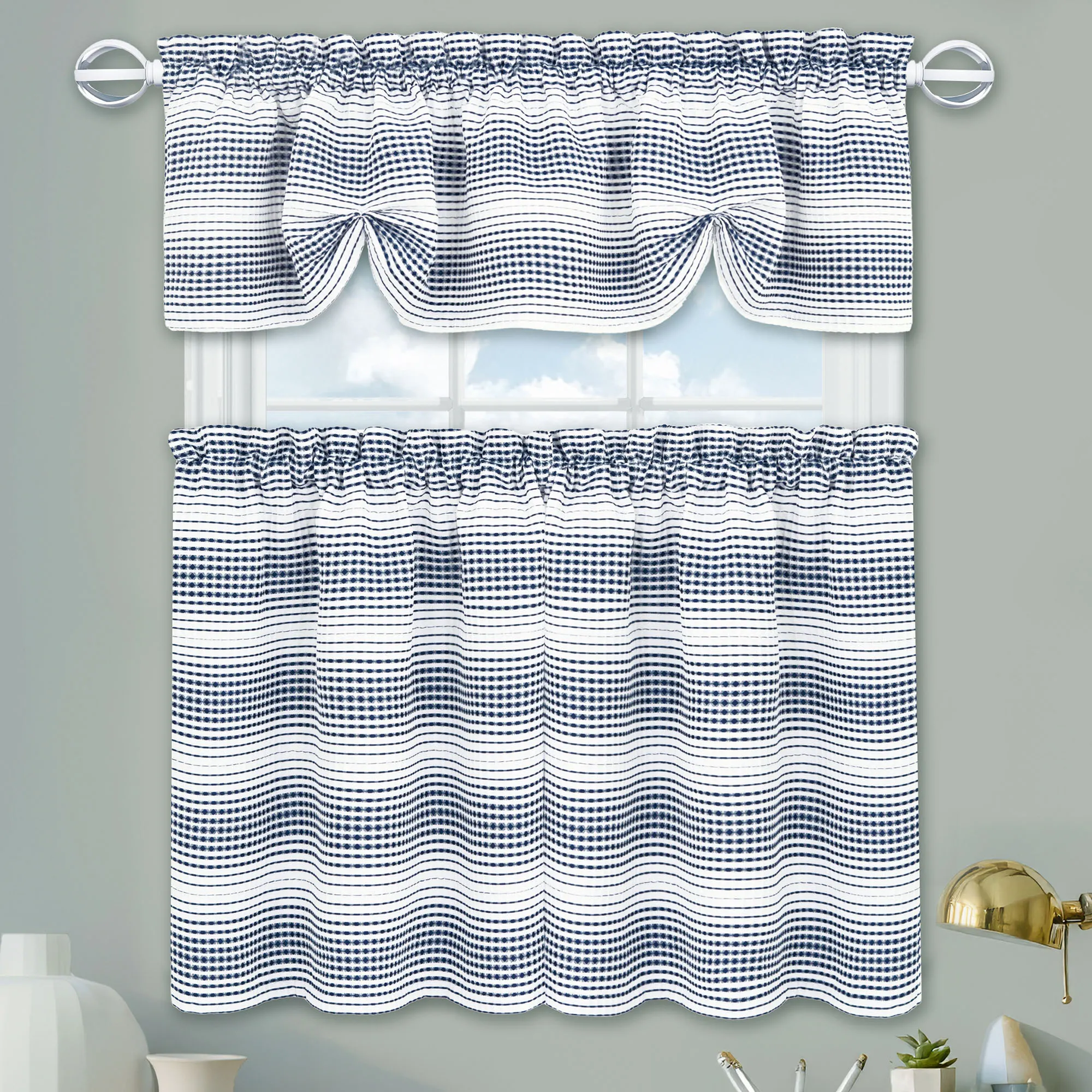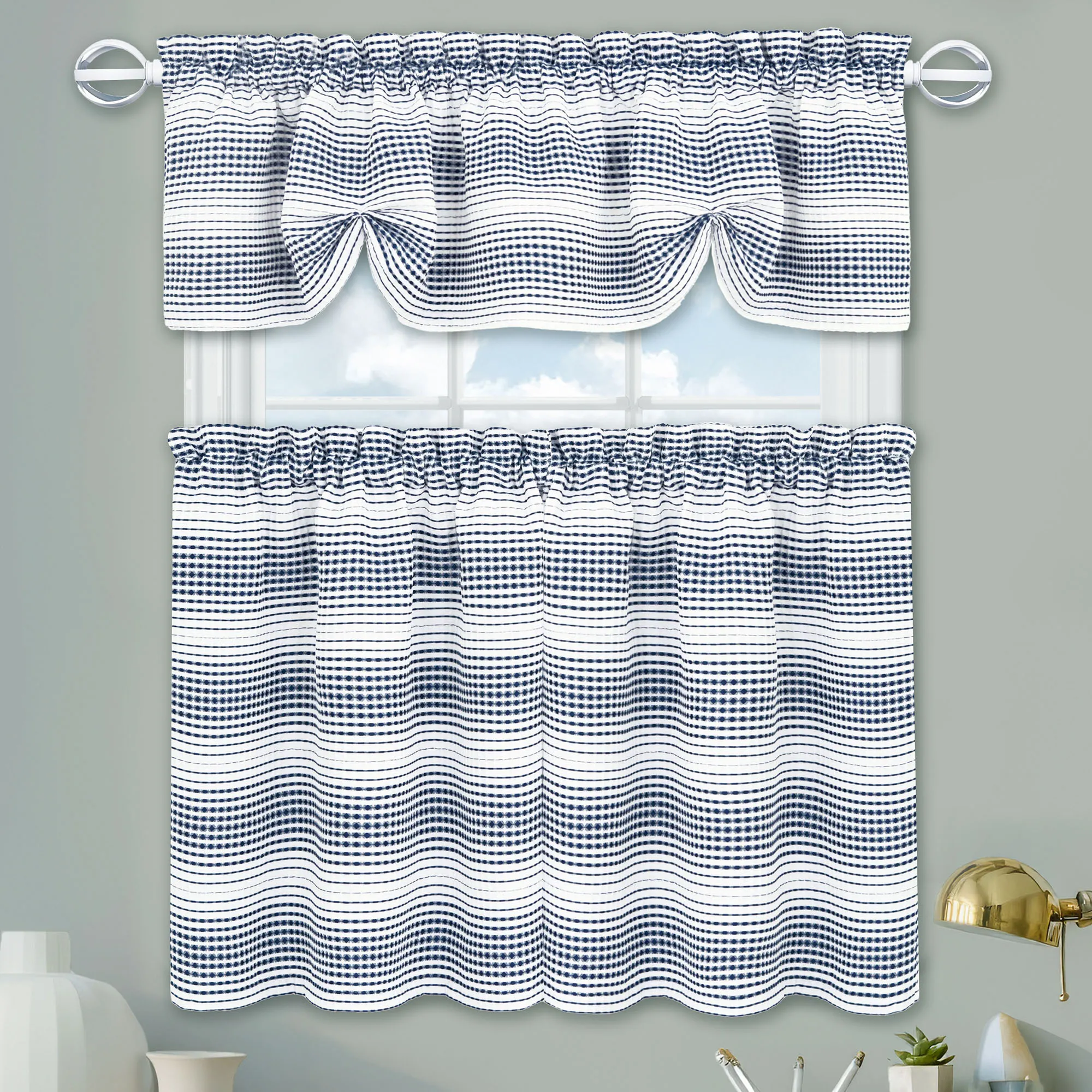 Elysian Waffle Weave Ombre Gradient Stripe Tier and Valance Window Treatment Set