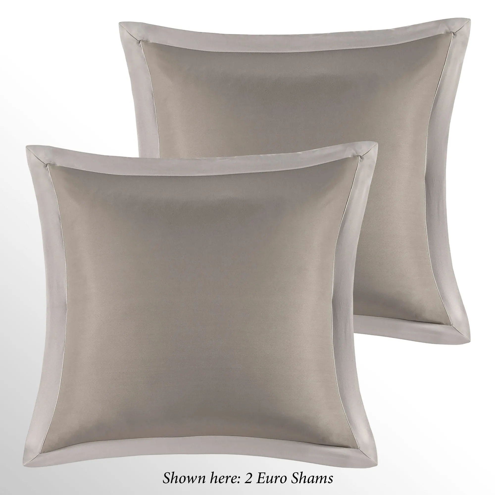 European shams are solid dark khaki with a warm beige flange and have French back closures.