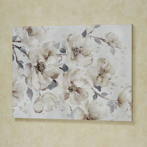 These Enchanted Blooms decorate with sweetness. This giclee on canvas floral wall art features blossoming flowers with colored gel and glitter embellishments. Colors include shades of beige, natural, ivory, light taupe, gray, and taupe. Canvas is gallery-wrapped over a wood frame. Floral wall art measures 40"Wx2"Dx30"H.