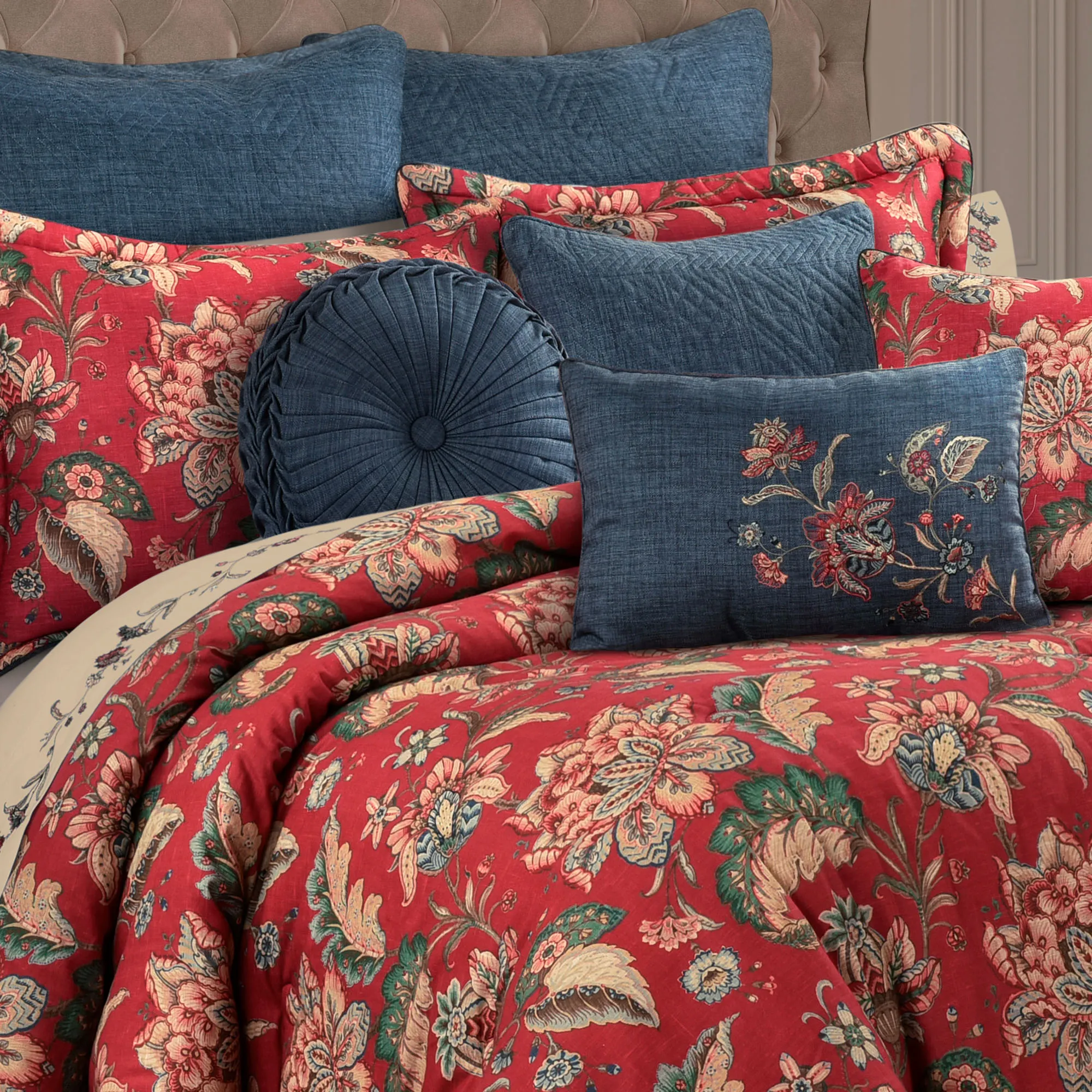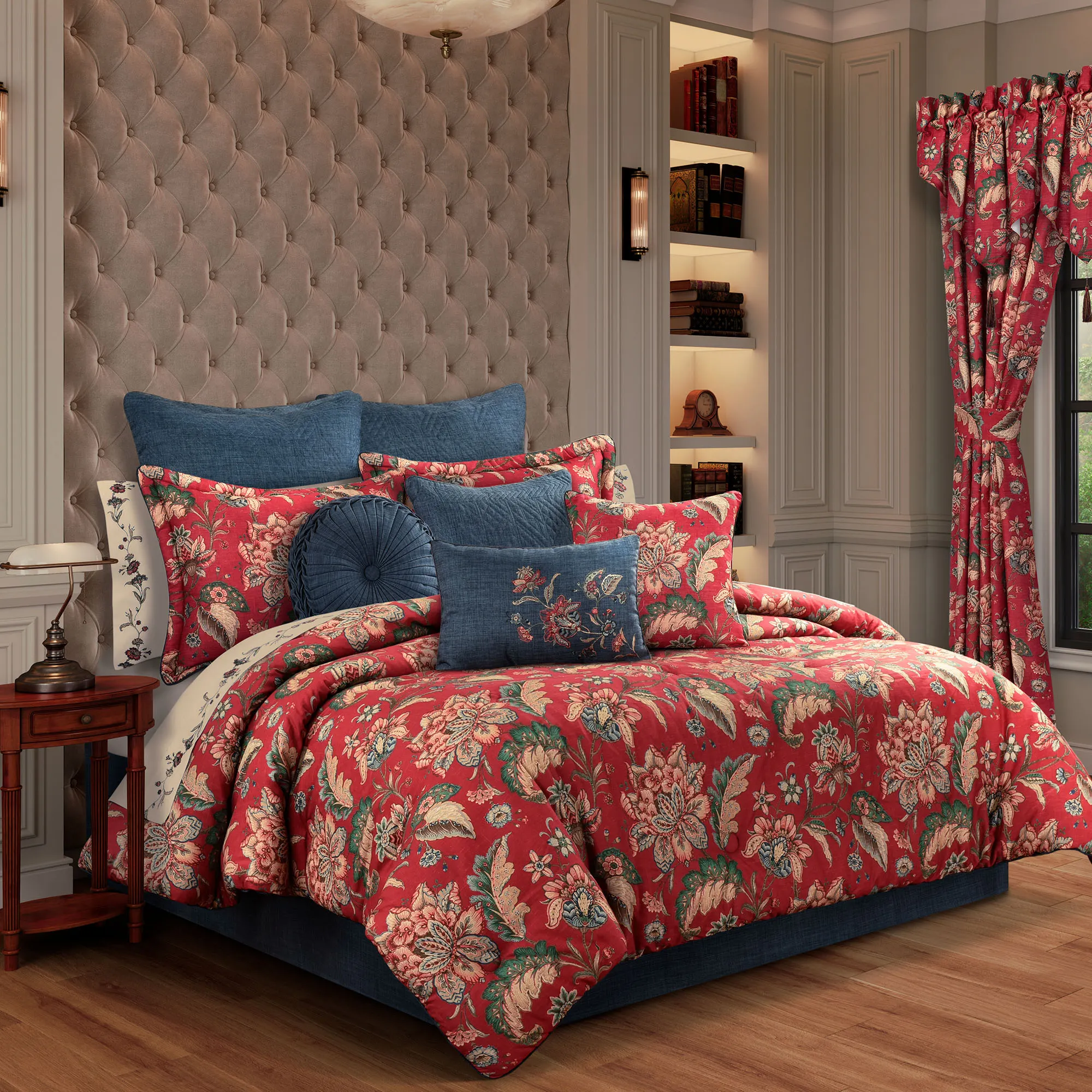 Enchanted Garden Red Jacobean Floral Comforter Set Luxury Bedding by J Queen New York