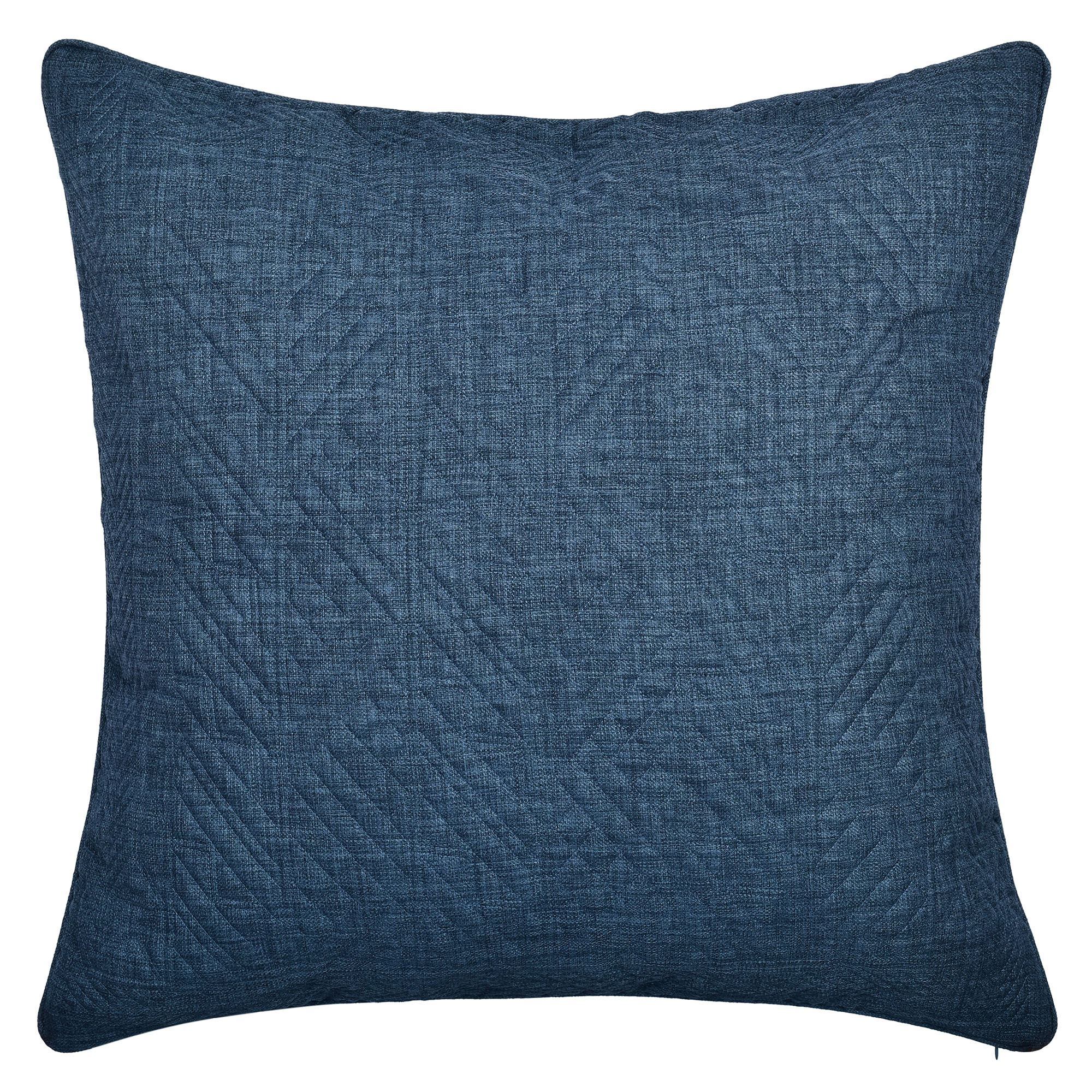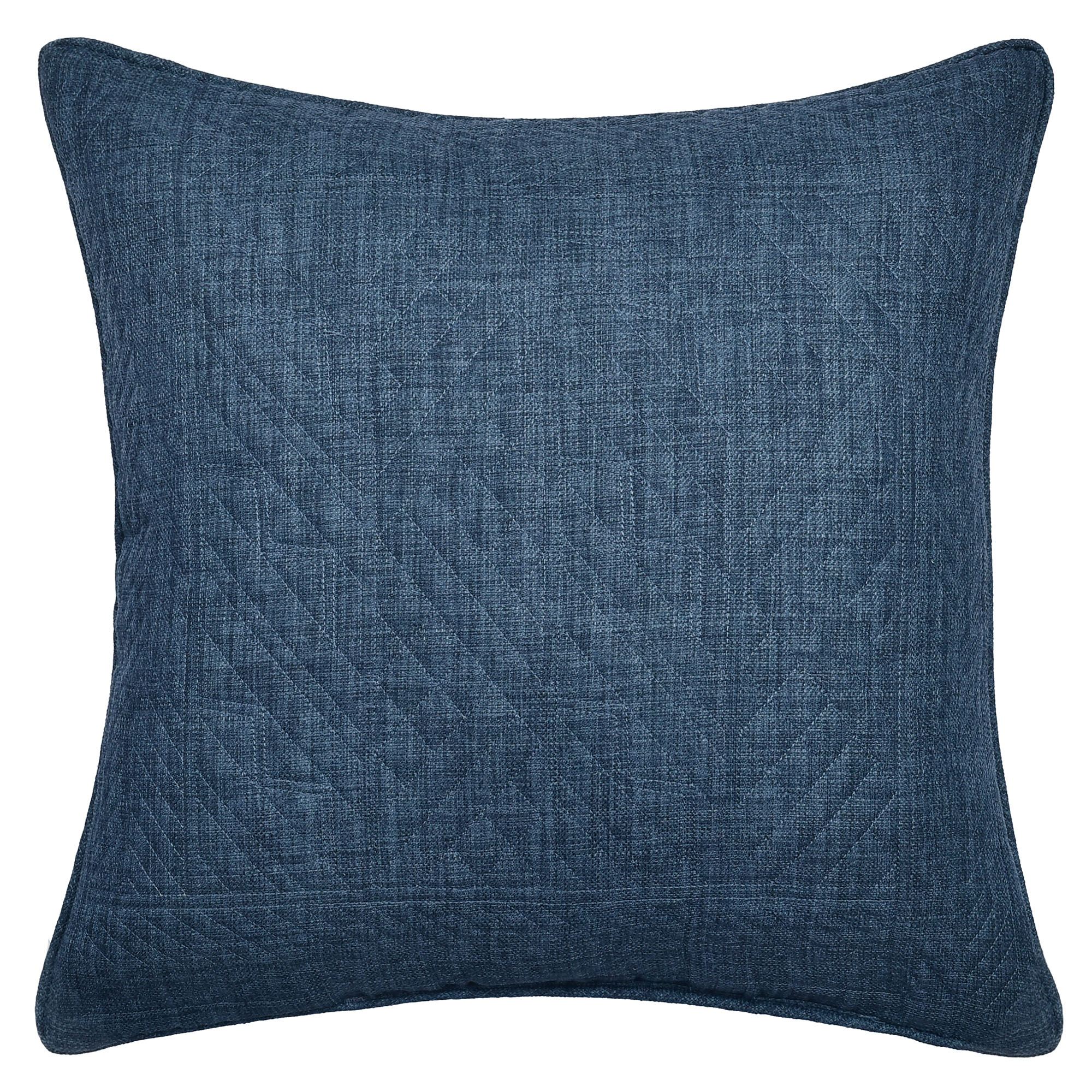 The indigo, woven-textured European Sham has geometric quilting, piped ends, and a zipper closure; reverses to indigo woven texture.
