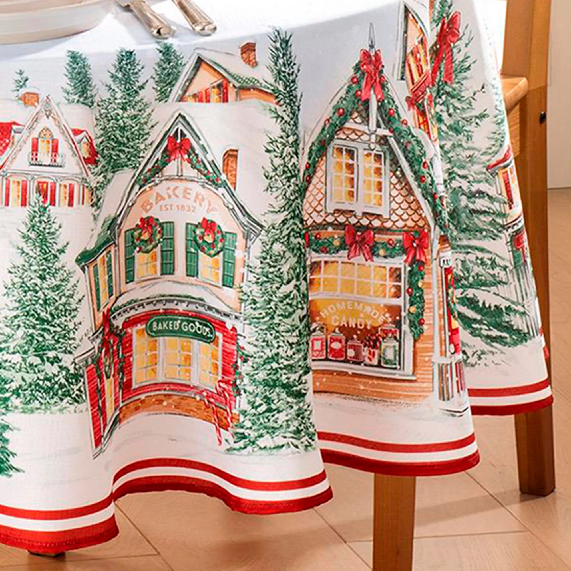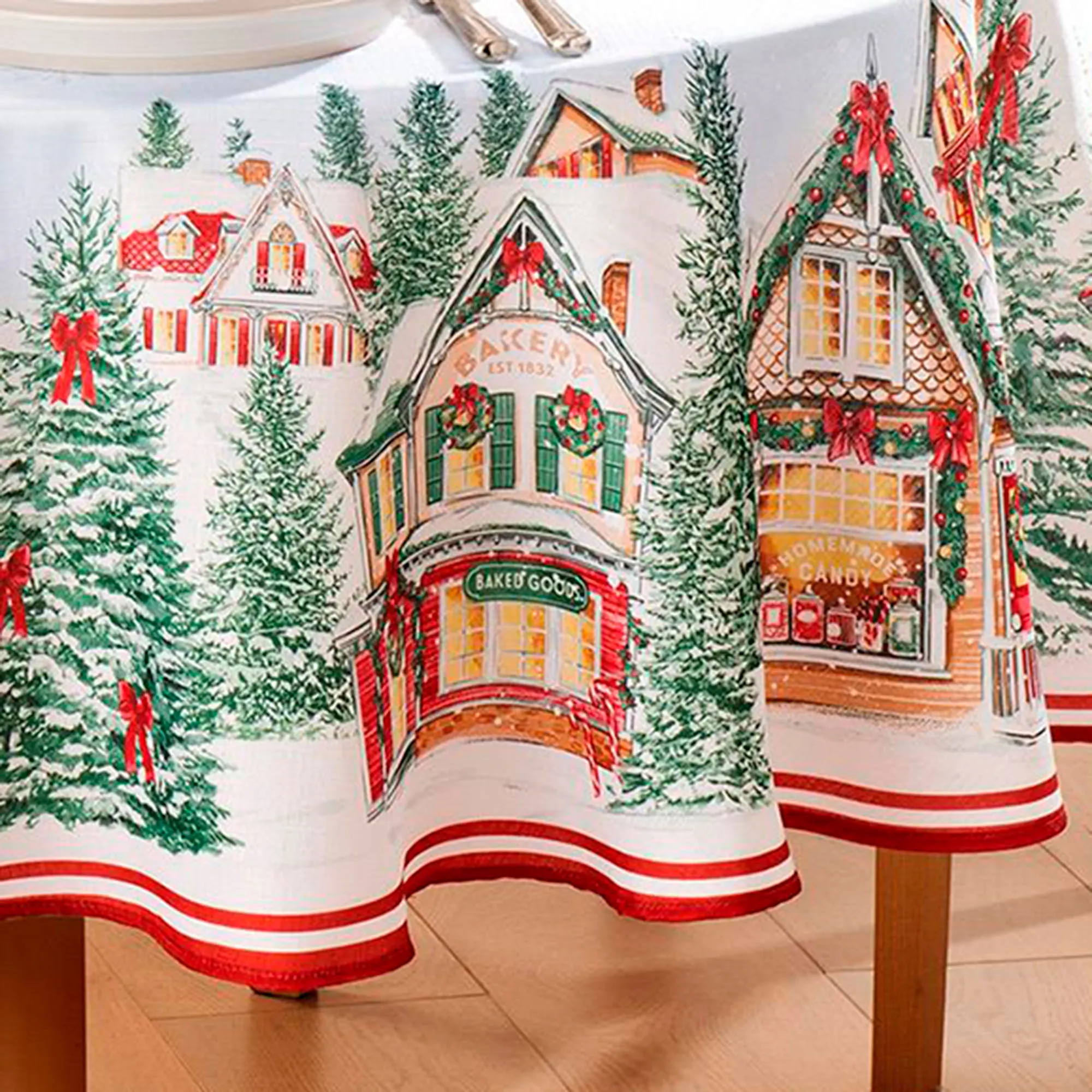 Enchanted Noel Christmas Village Holiday Round Tablecloth and Table Linens