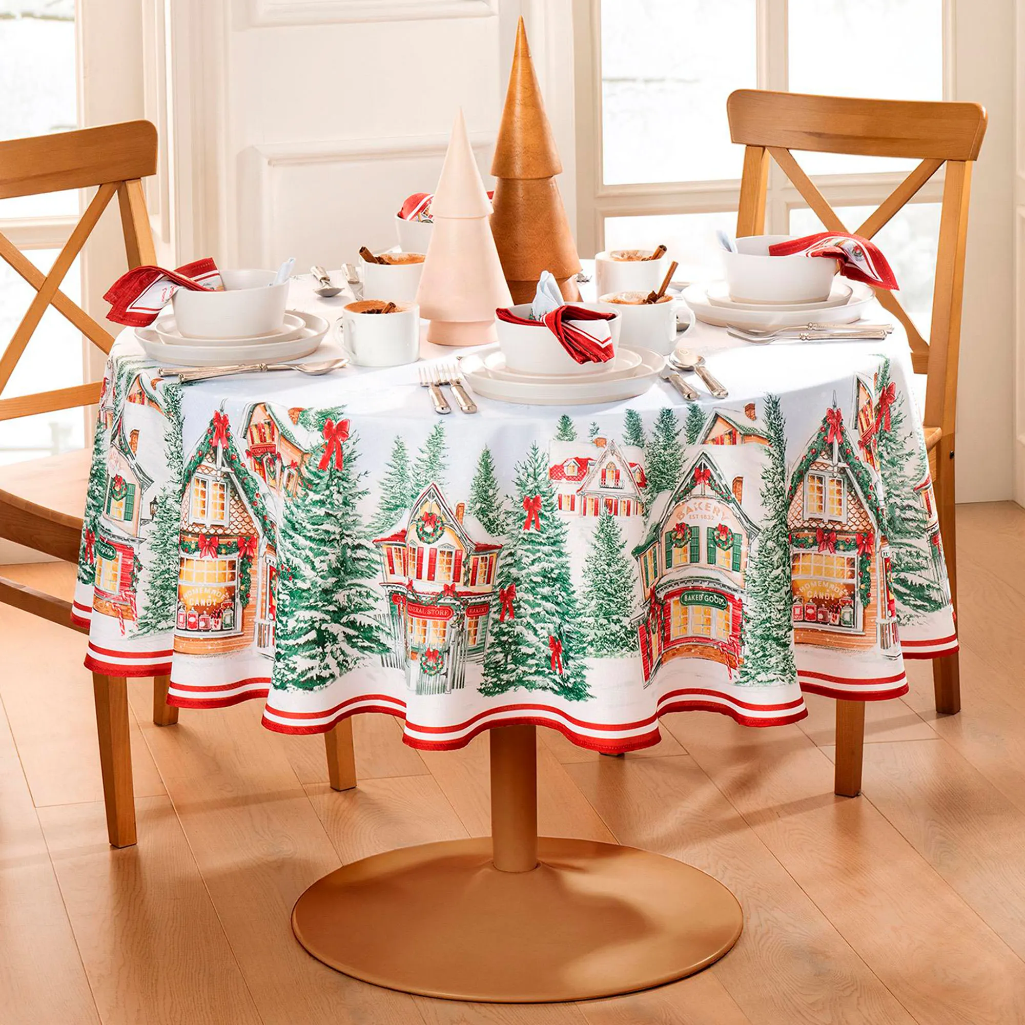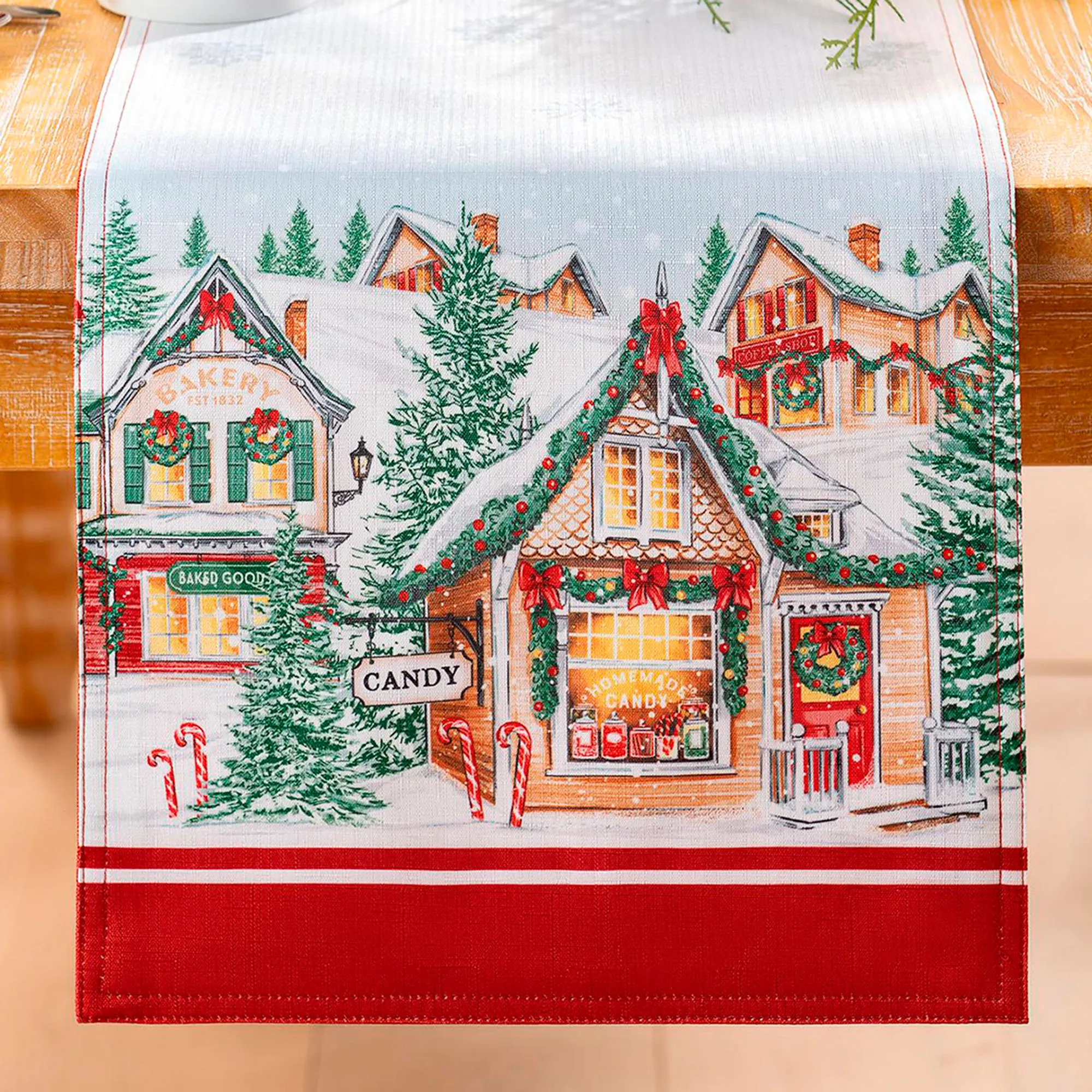 Enchanted Noel Christmas Village Holiday Table Runner and Table Linens