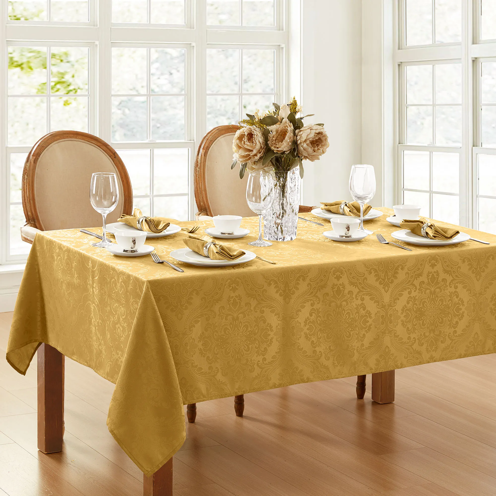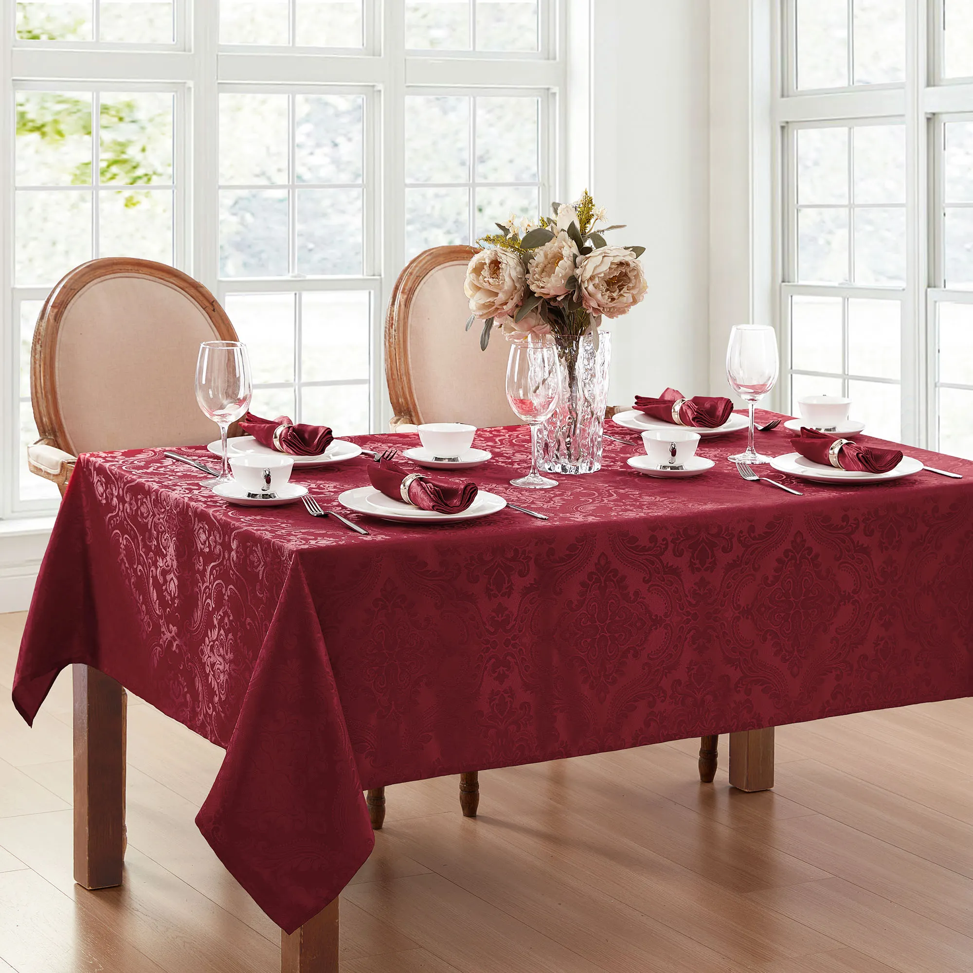 Ensley Stain Resistant Damask Rectangle Tablecloth and Table Linens
