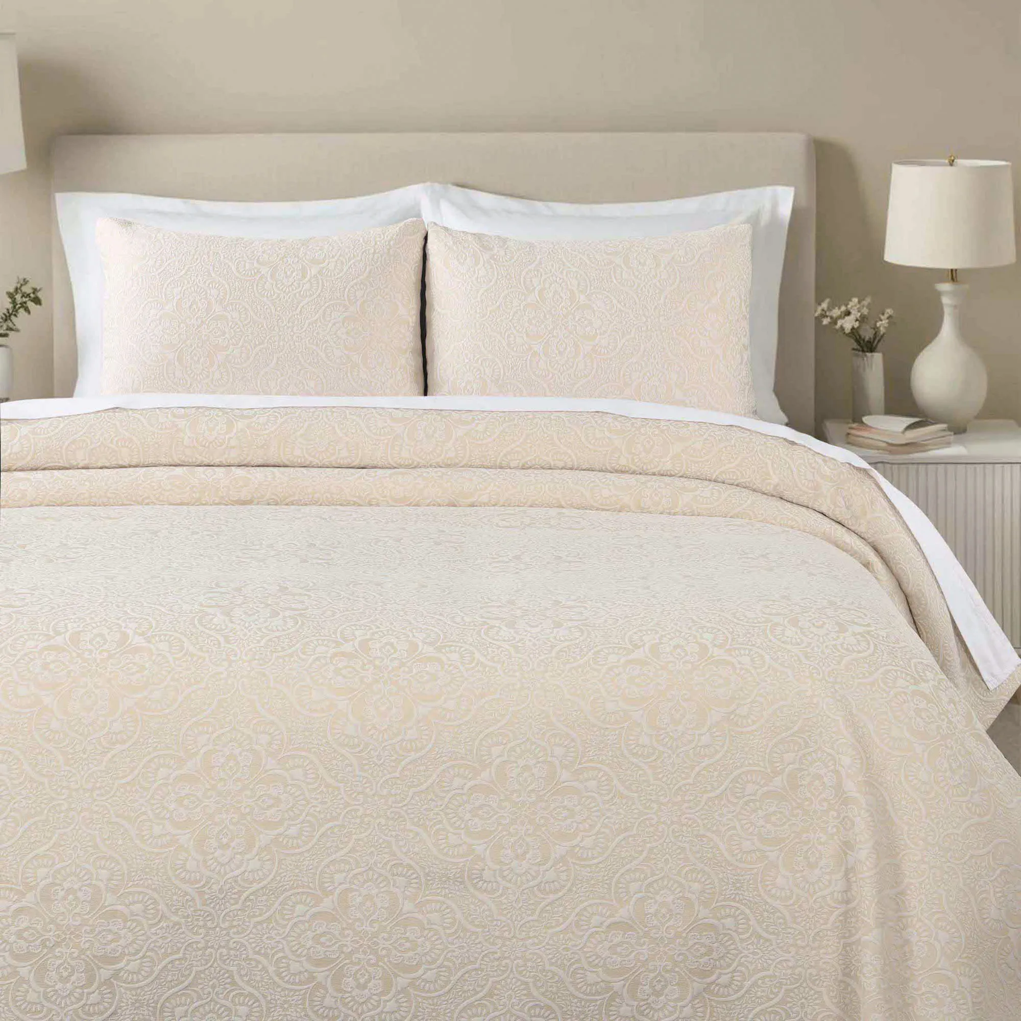 Enzy Medium Weight Floral Medallion Matelasse Bedspread Set Bedding