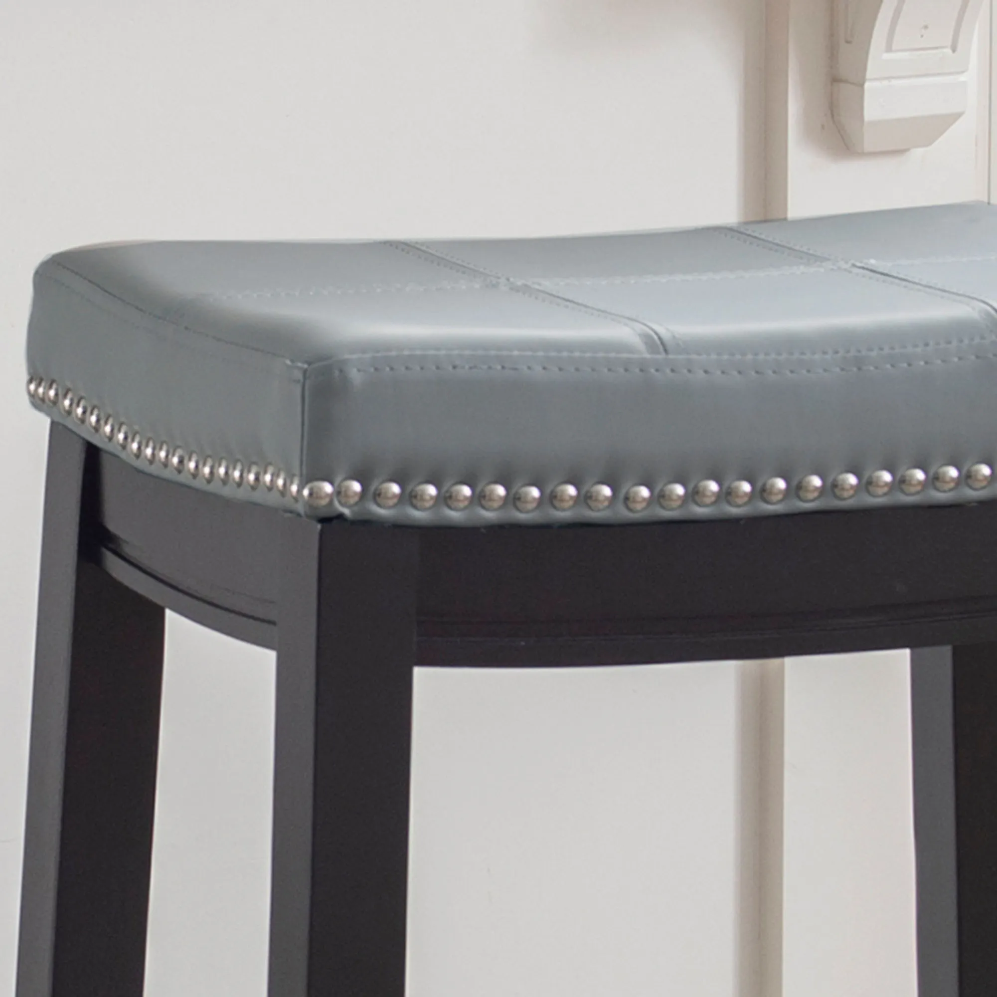 The Erindale Counter Stool is wood with metal nailhead trim and faux leather upholstery. Cushion has foam fill.