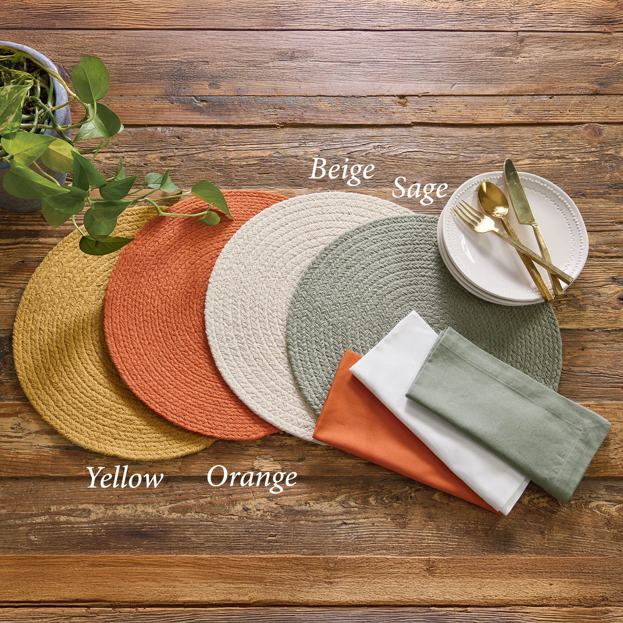 • Solid color cotton table linens