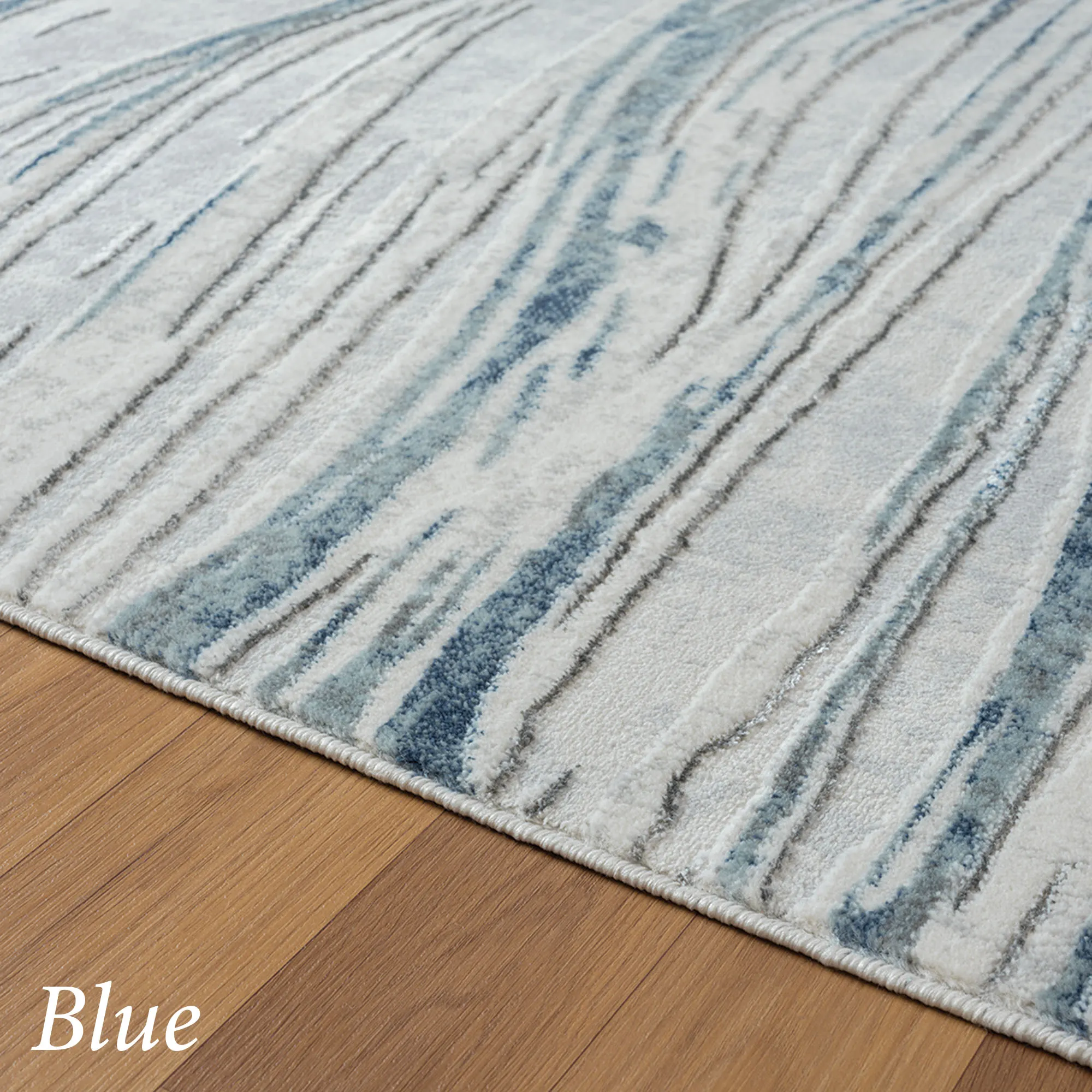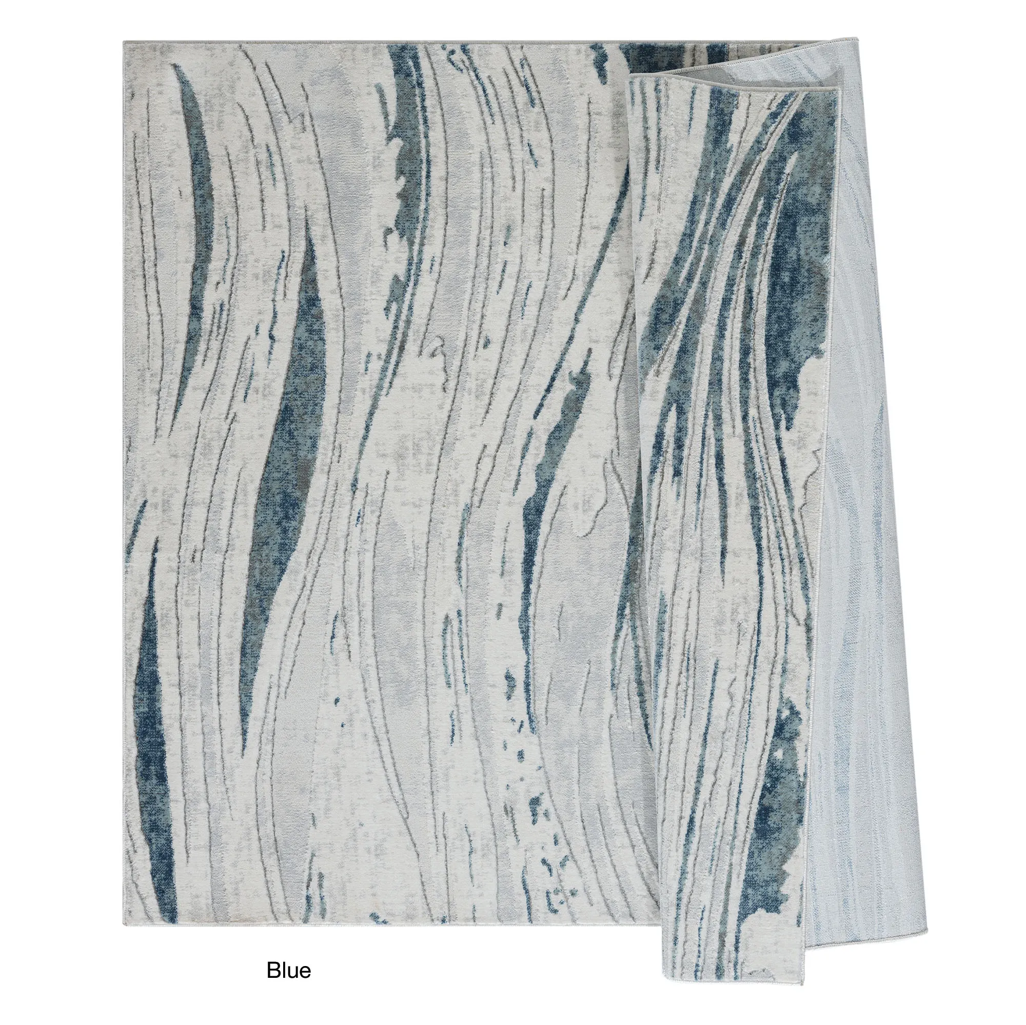 Style flows through the Estelle Abstract Area Rug with a captivating modern appeal. Power-loomed from a polypropylene/polyester blend, the .35" thick rug features an abstract wave design filled with curving lines, mottled hues, carved detailing, and a unique hi-low texture. Blue has hues of light blue, dark blue, denim, gray, ivory, and charcoal. Gray contains gray shades, charcoal, ivory, linen, and light blue. Backing is cotton. We recommend professional cleaning by a rug cleaner. Imported.
