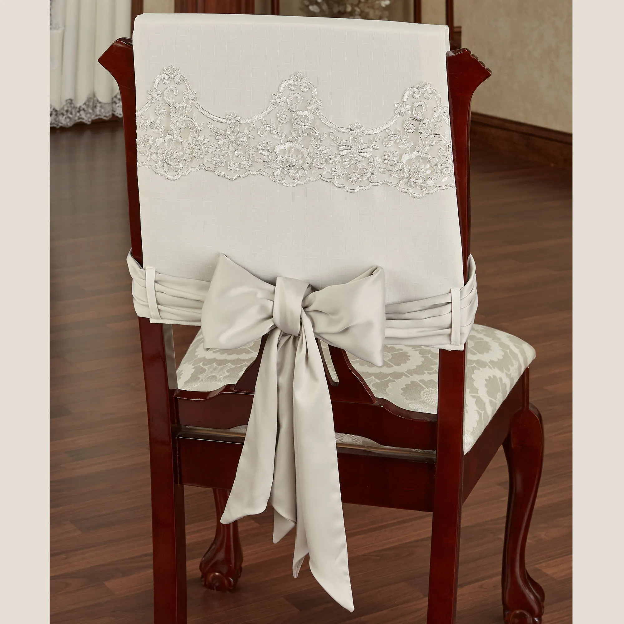 The Evangelina Chair Cover Set is made of polyester. Imported.