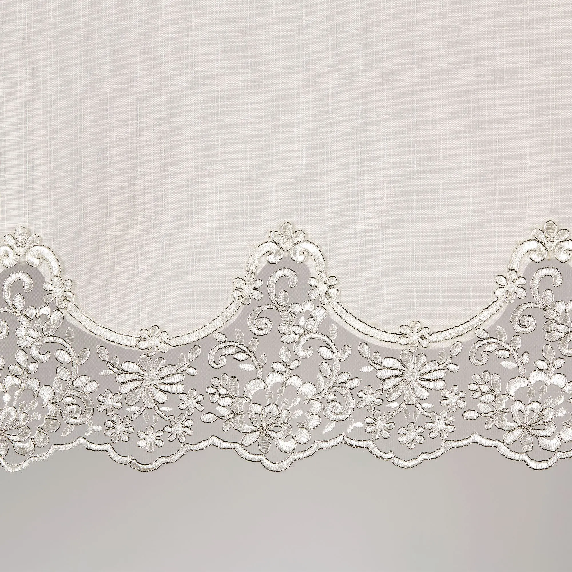 Evangelina Ivory and Silver Lace Trim Long Swag Window Treatment