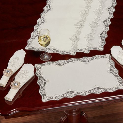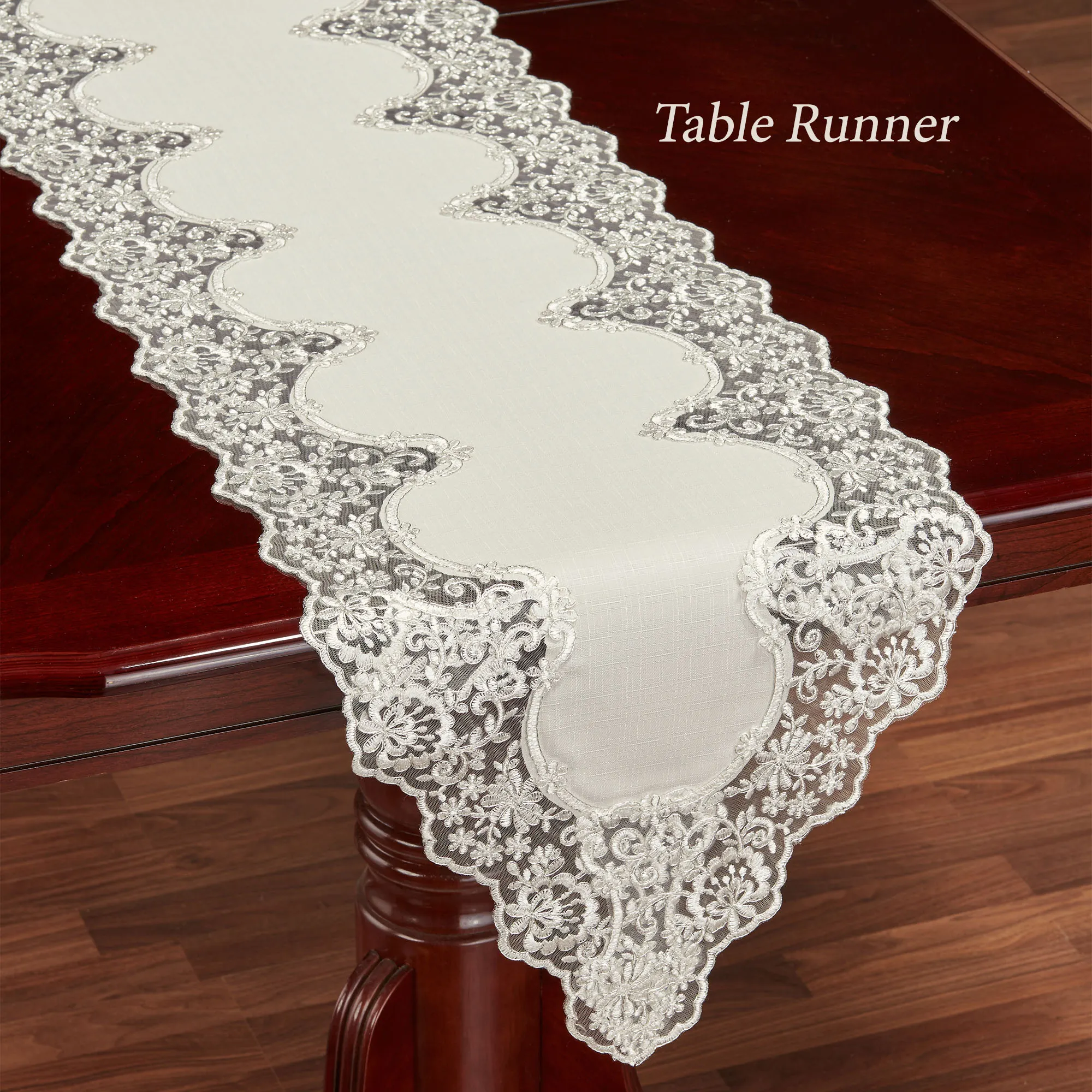 Evangelina Ivory and Silver Lace Trim Placemats and Accessories