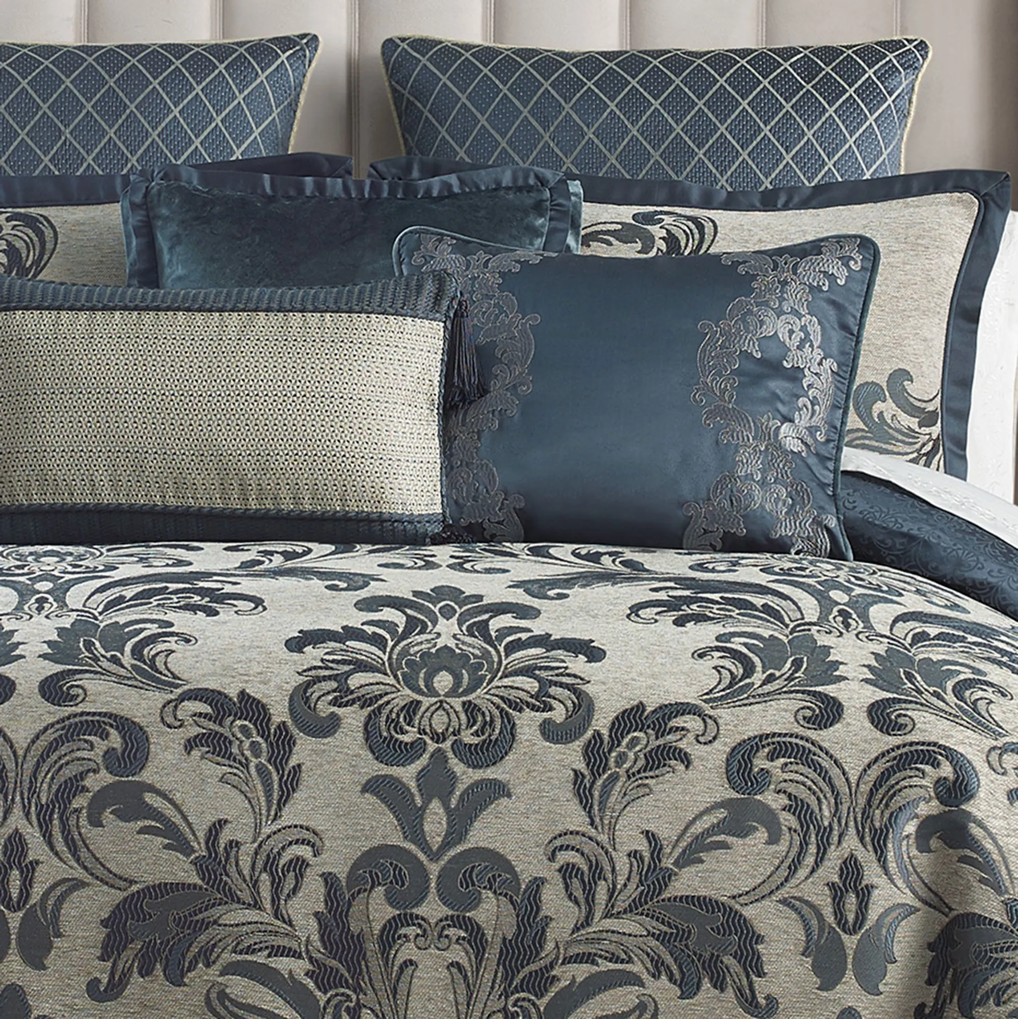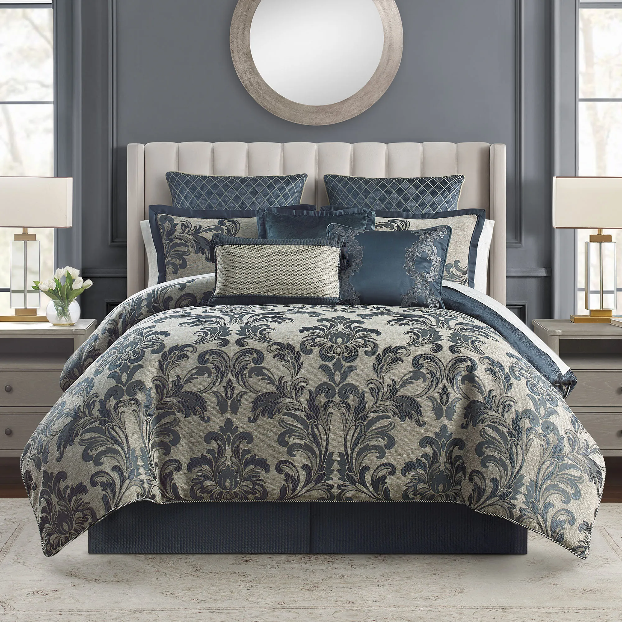 Everett Dark Blue and Midnight Damask 6 pc Comforter Bed Set by Waterford Linens