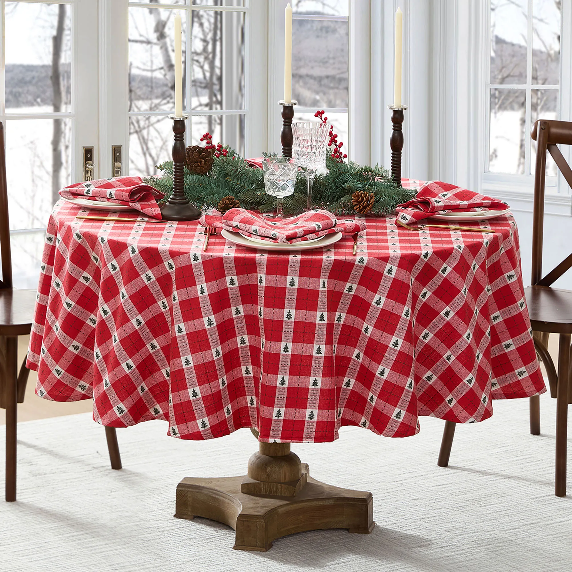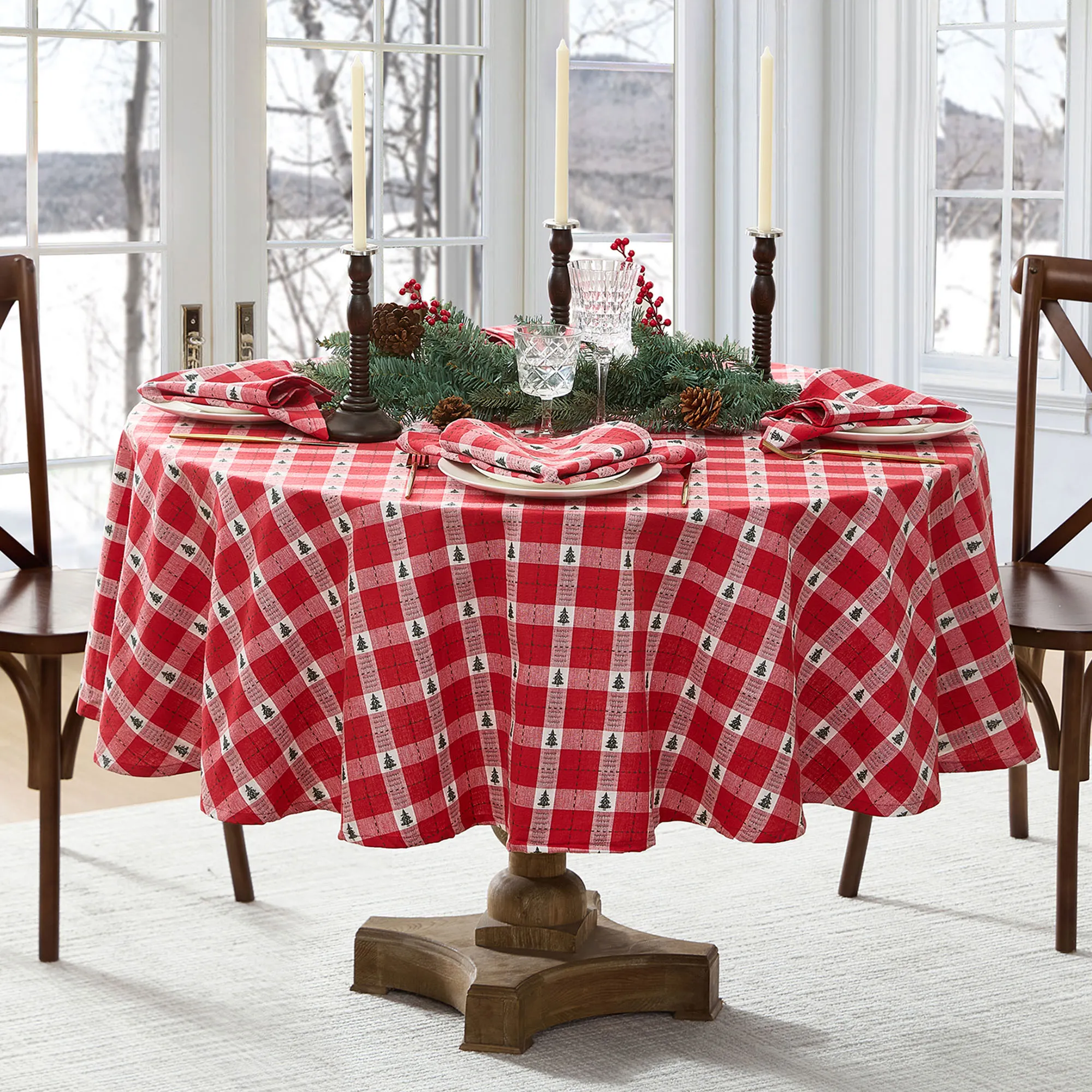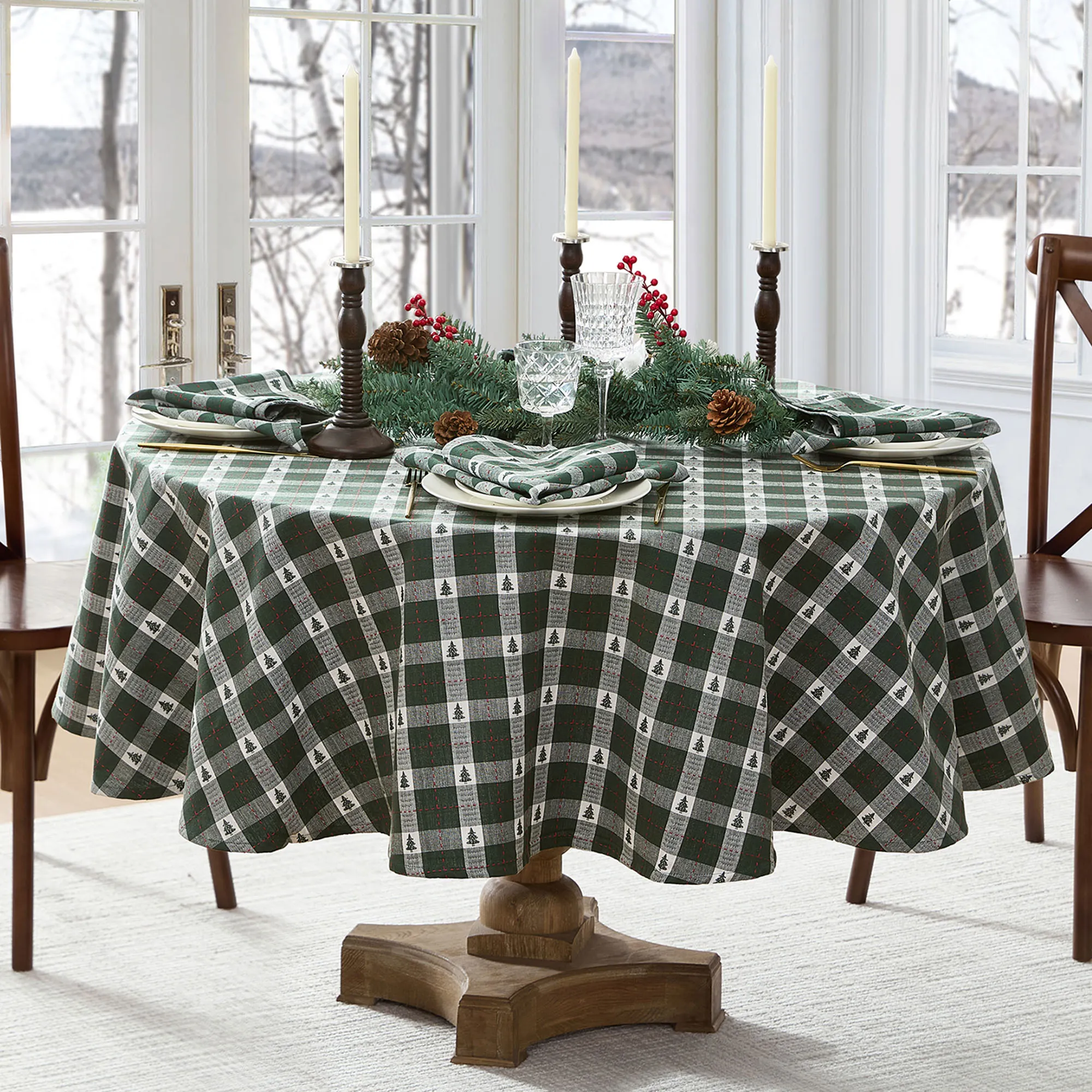 Evergreen Majesty Pine Tree Holiday Plaid Round Tablecloth and Table Linens