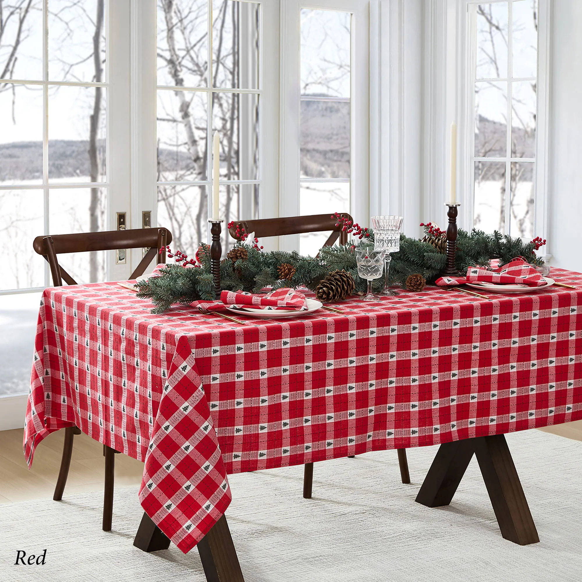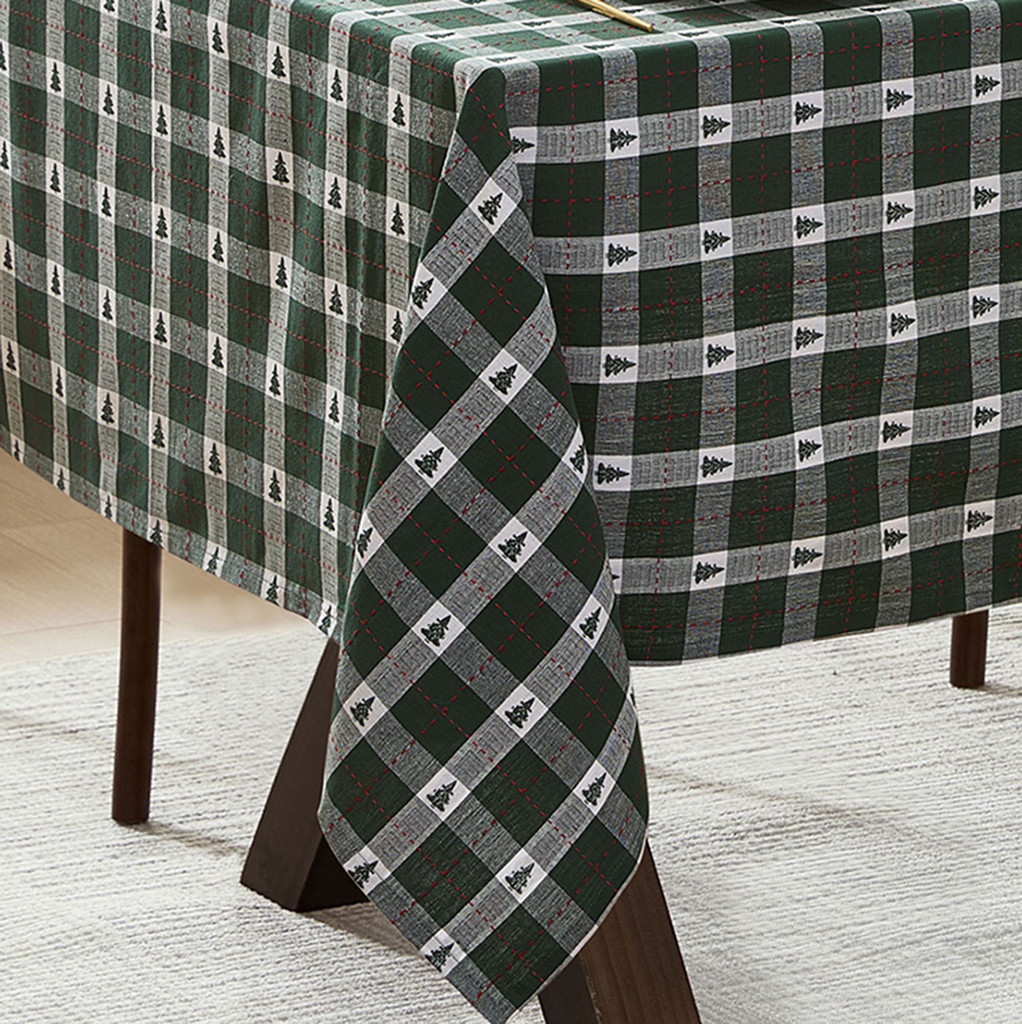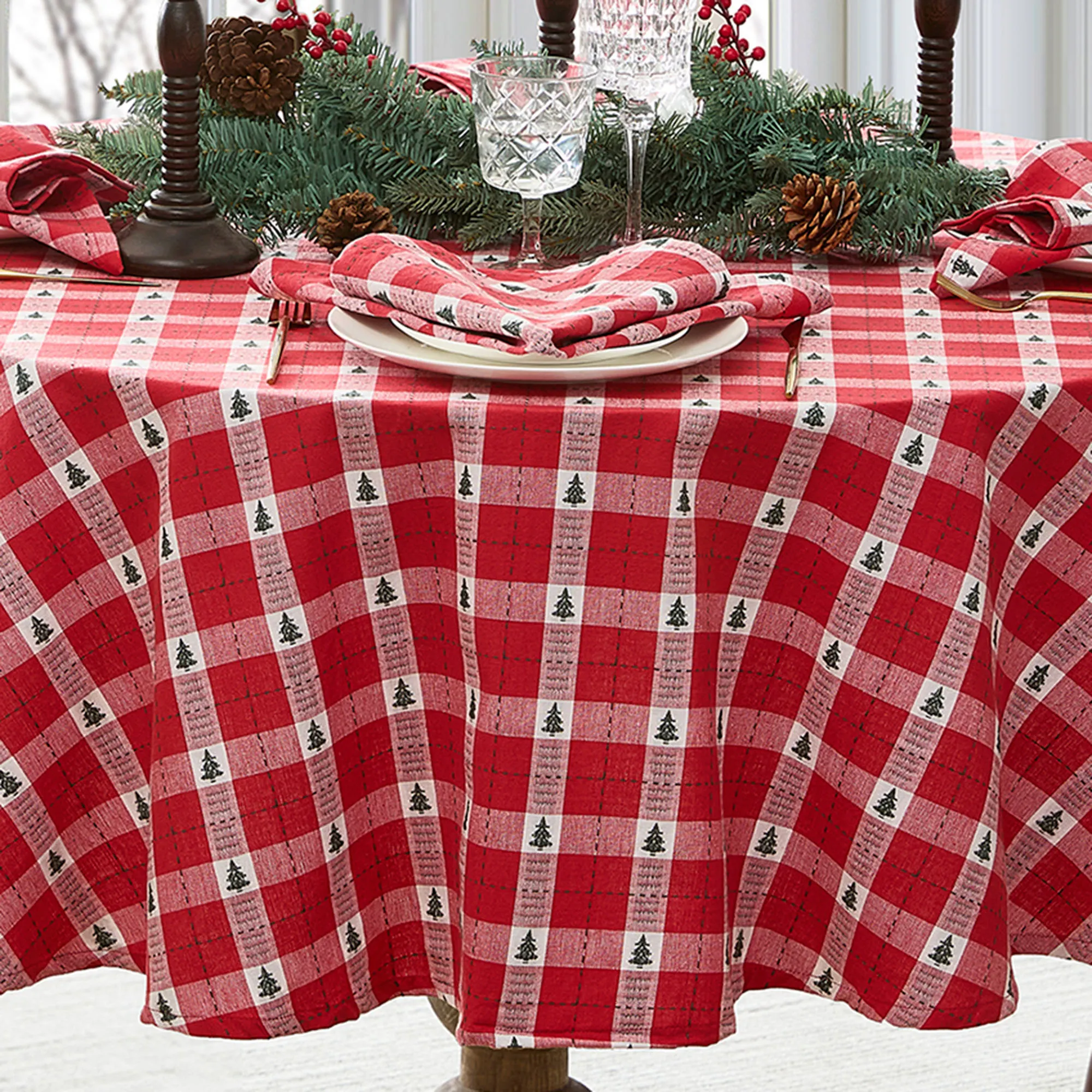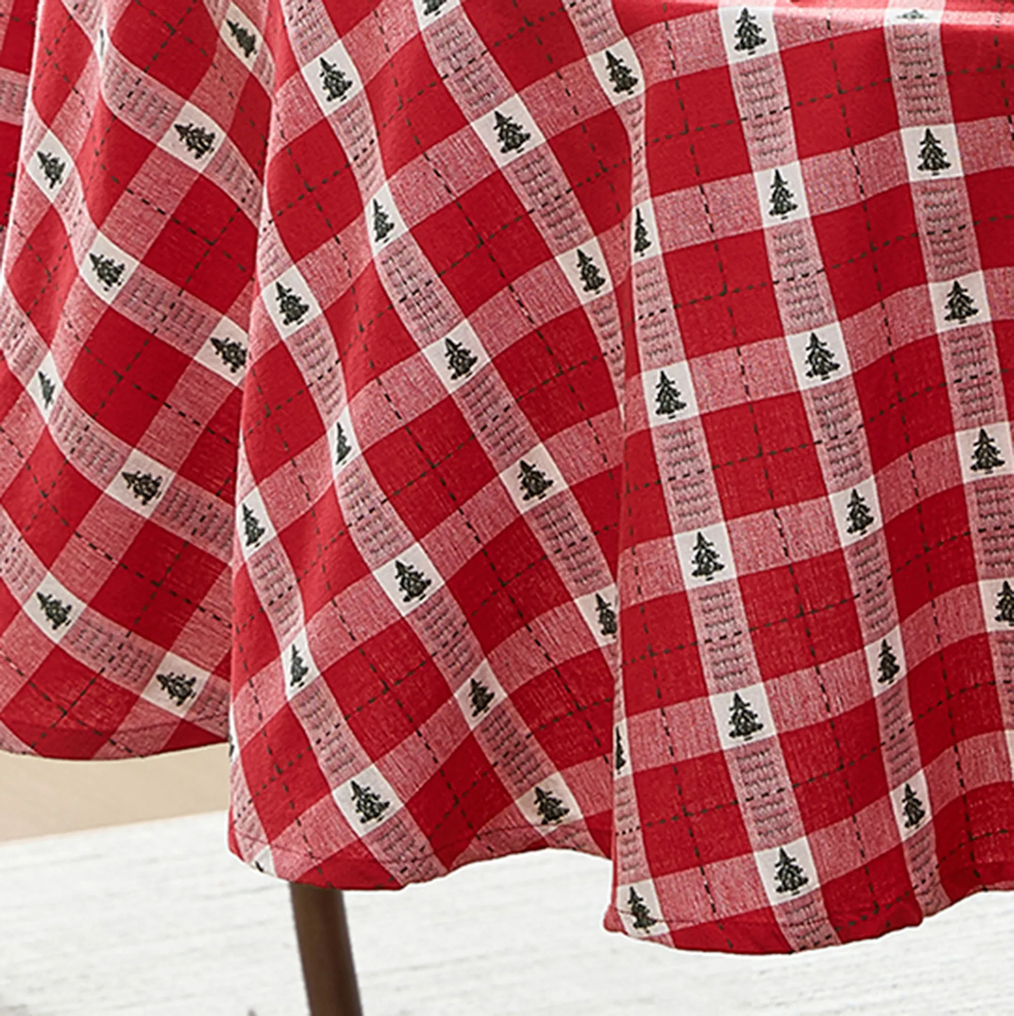 Evergreen Majesty Pine Tree Holiday Plaid Round Tablecloth and Table Linens