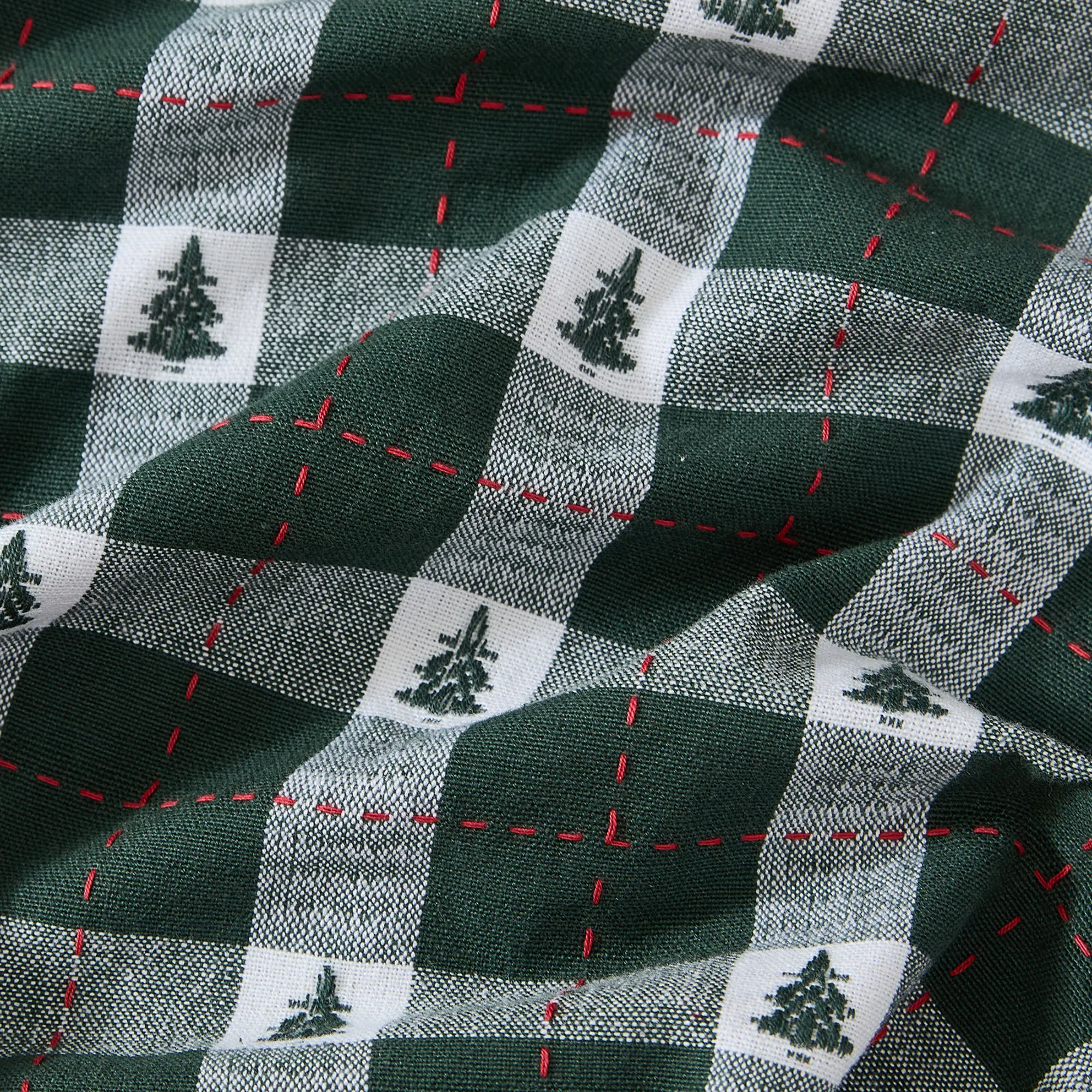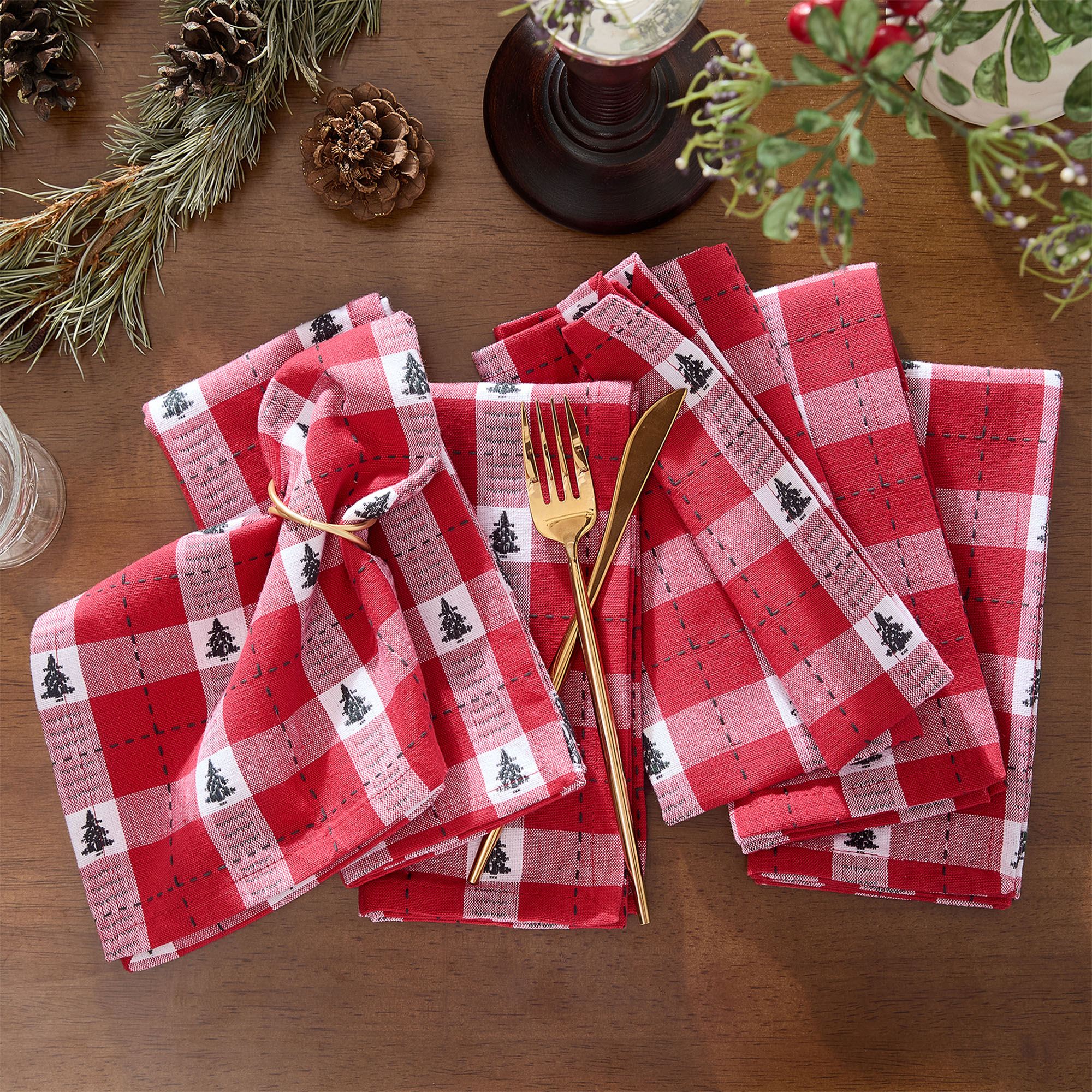 Dress your dining space with the rustic beauty of the Evergreen Majesty Plaid Table Linens. Crafted from cotton, each tailored dobby-woven table linen features a classic plaid in white and solid color hues. Charming pine tree silhouettes and color-contrast stitching complete the timeless pattern. Choose Round Tablecloth, Rectangle Tablecloth, Oval Tablecloth, Table Runner, or Napkin Set of 8. Machine washable. Imported.