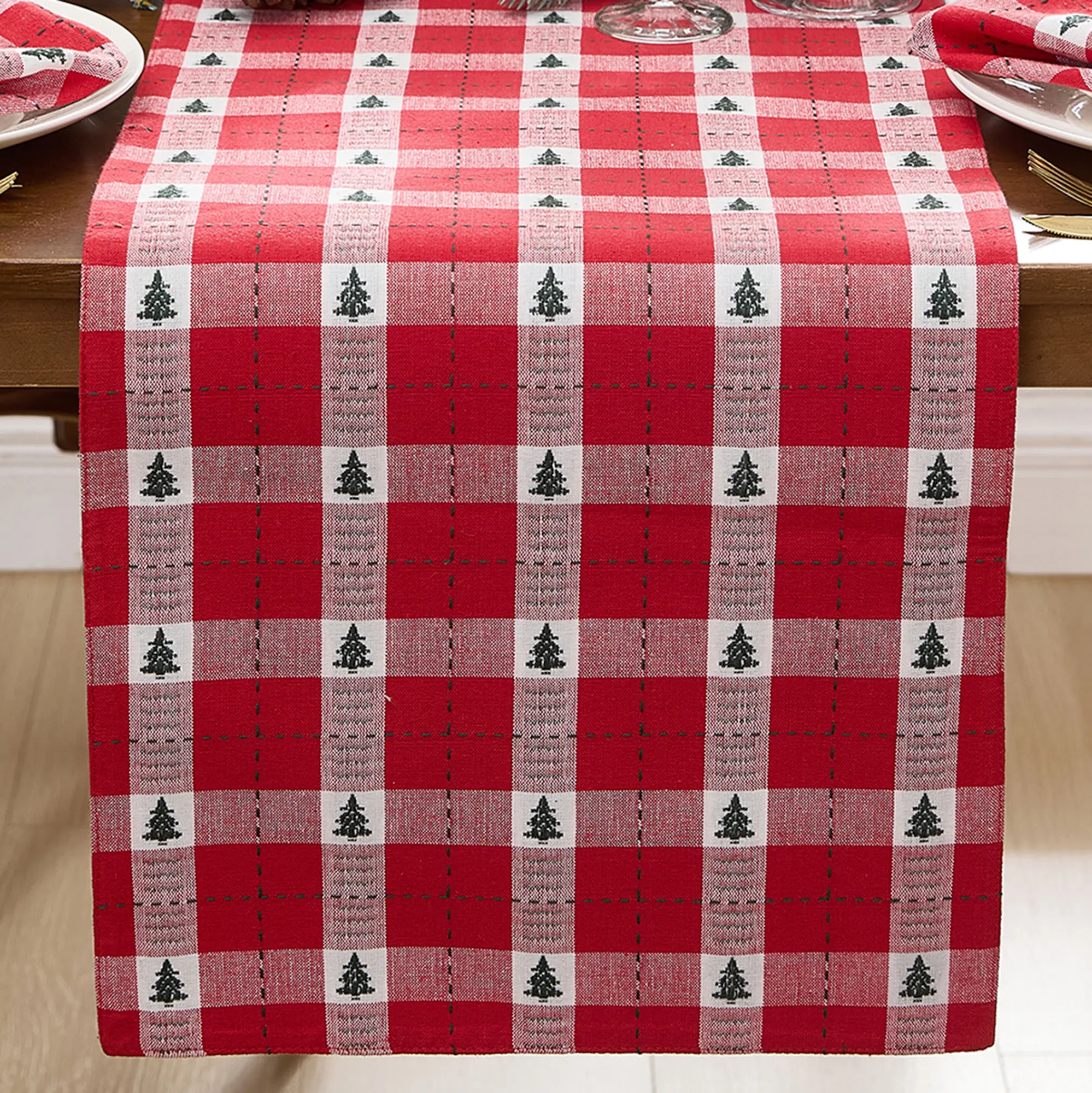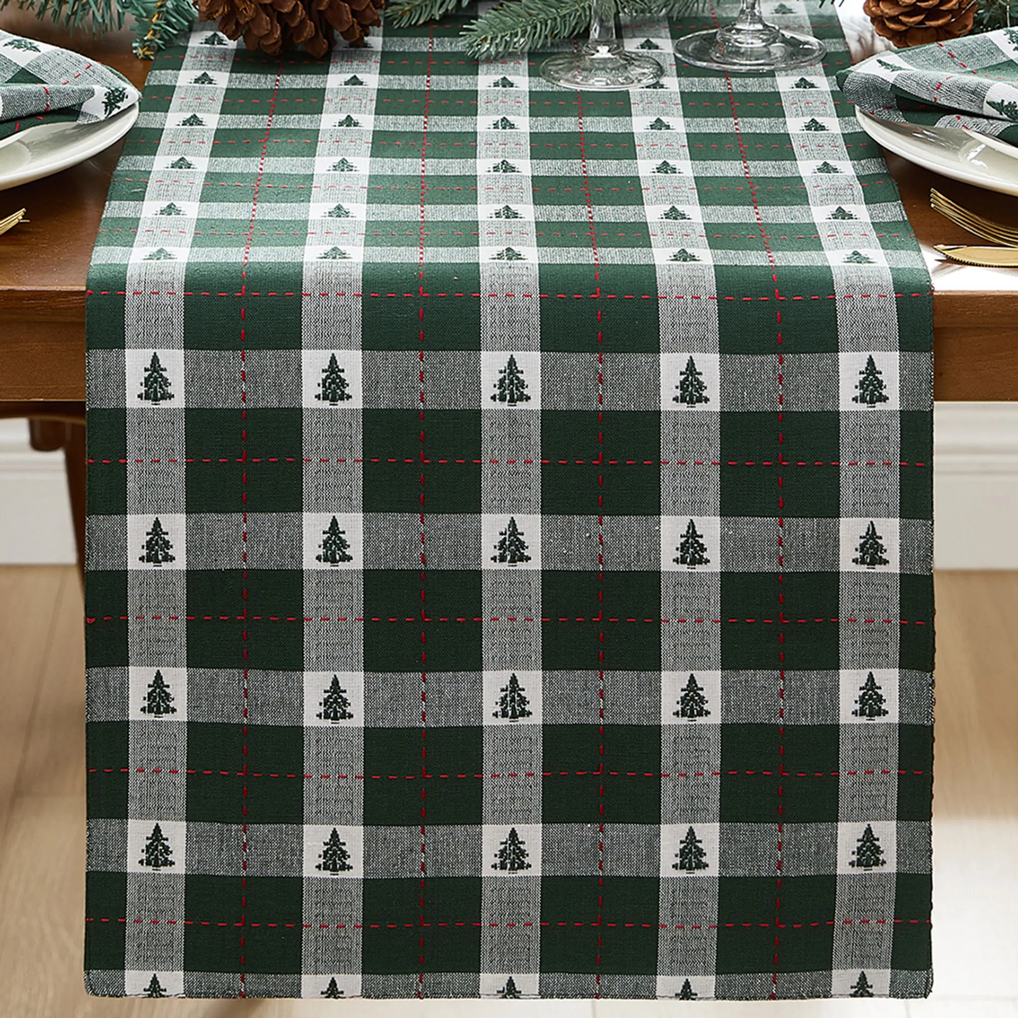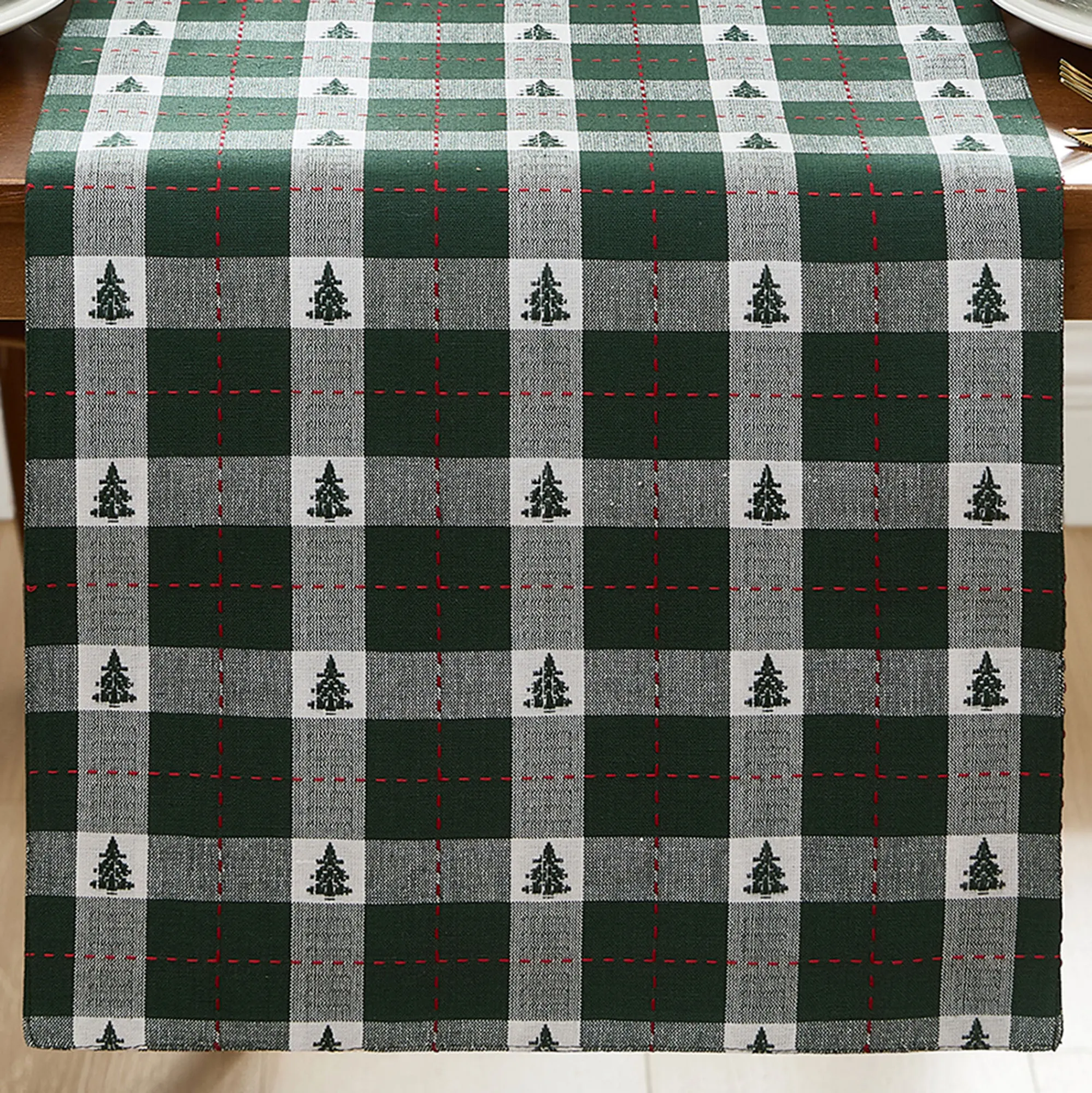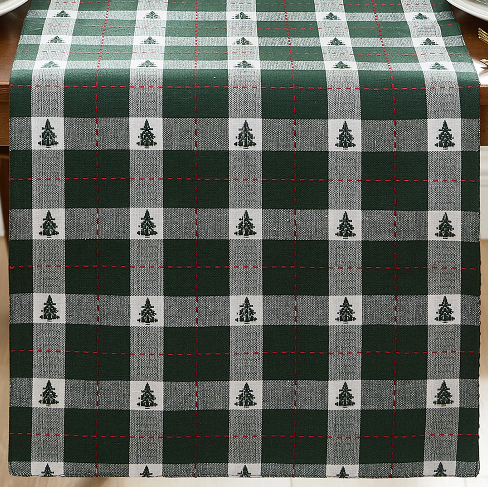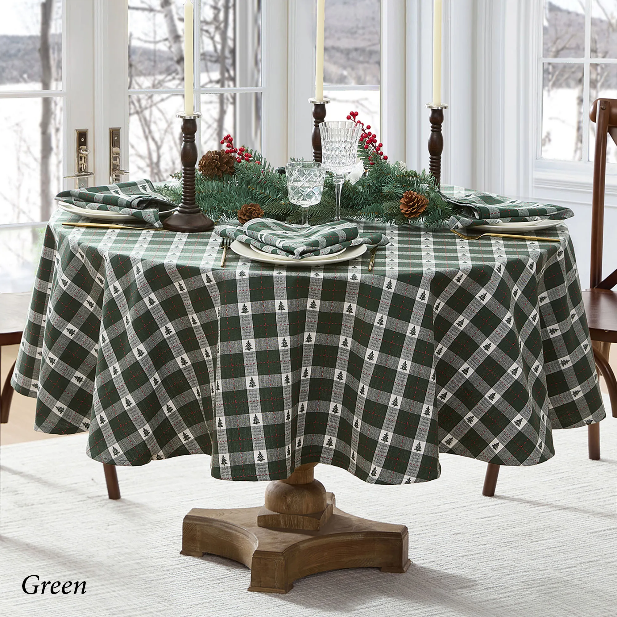 Evergreen Majesty Pine Tree Holiday Plaid Table Runner and Table Linens