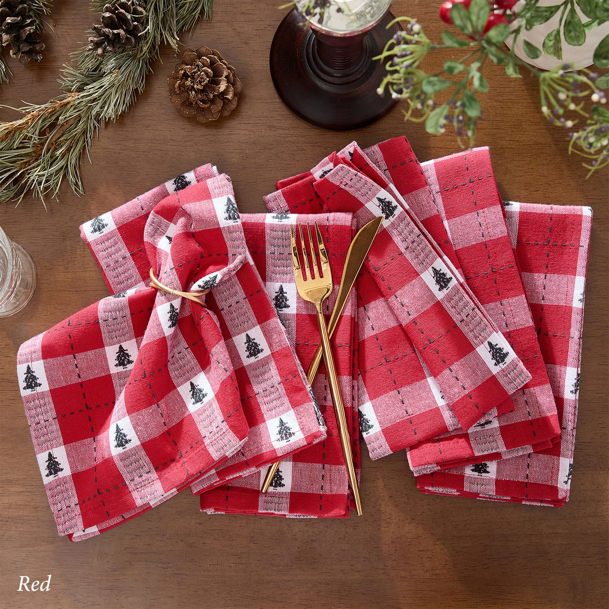 Dress your dining space with the rustic beauty of the Evergreen Majesty Plaid Table Linens. Crafted from cotton, each tailored dobby-woven table linen features a classic plaid in white and solid color hues. Charming pine tree silhouettes and color-contrast stitching complete the timeless pattern. Choose Table Runner, Rectangle Tablecloth, Round Tablecloth, Oval Tablecloth, or Napkin Set of 8. Machine washable. Imported.