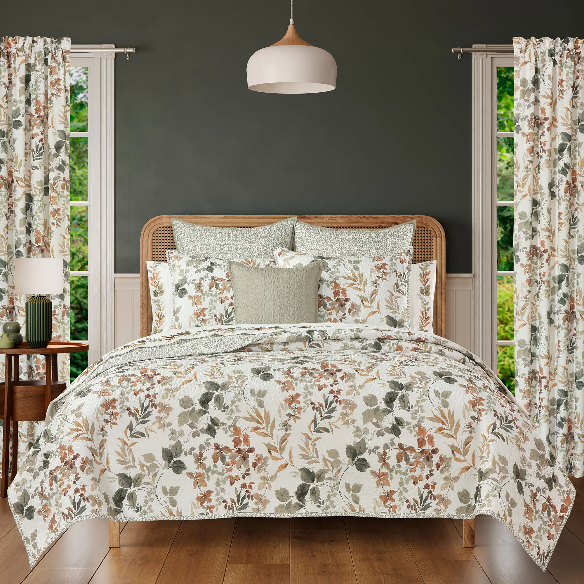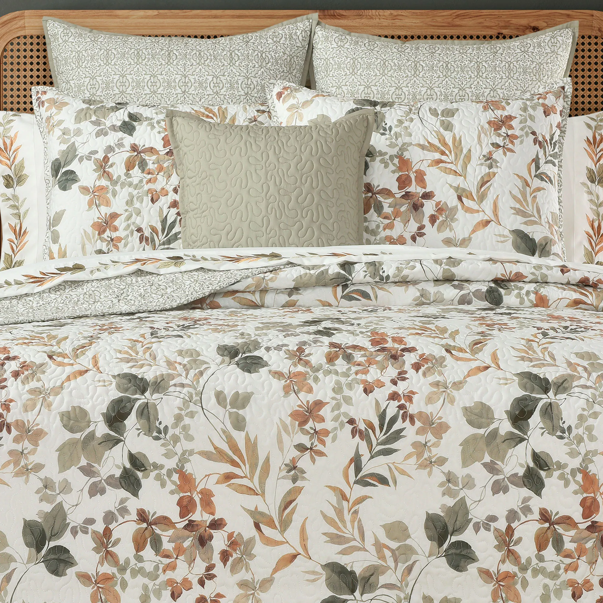 Evergreen Reversible Botanical Leaf Print Quilt Set Bedding by Royal Court