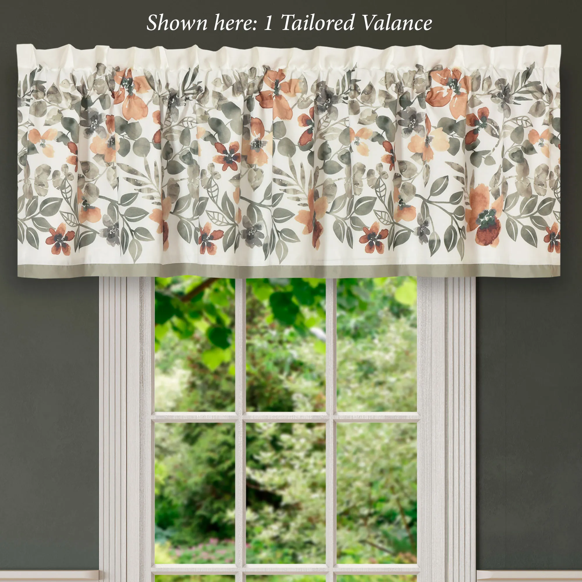 Lined Window Treatments have tailored edges and 3" rod pockets. Curtain Pair includes tiebacks. Valance has a sage bottom band.