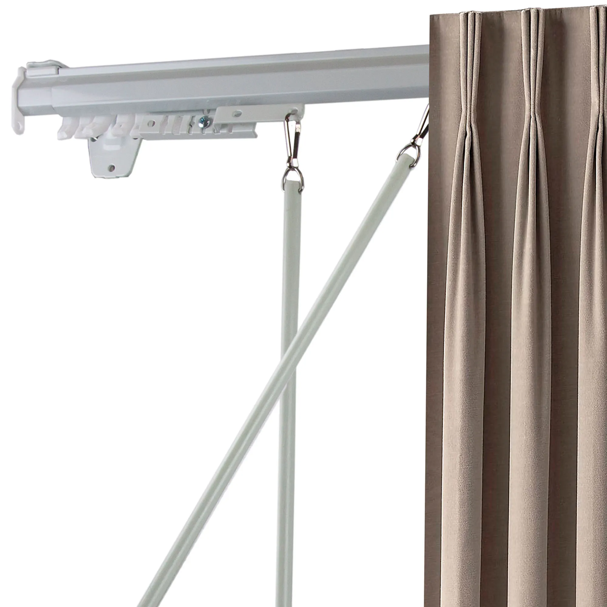 Hang your window treatment on the Everstead Single Traverse Rod for a stunning visual display. The white, center-open traverse rod has sliders made with hard plastic, can be be mounted to the wall or on the ceiling, and has a baton draw for easy opening on the left and right sides and child safety. For indoor use only. Set includes one adjustable, heavy-duty steel single traverse track, two batons, sliders, brackets that project 3", and mounting hardware. The 30"-48" has 3 brackets with 10 total attached sliders. The 48"-84" has 4 brackets with 20 total attached sliders. The 66"-120" has 5 brackets with 30 total attached sliders. The 120"-170" has 6 brackets with 40 total attached sliders.