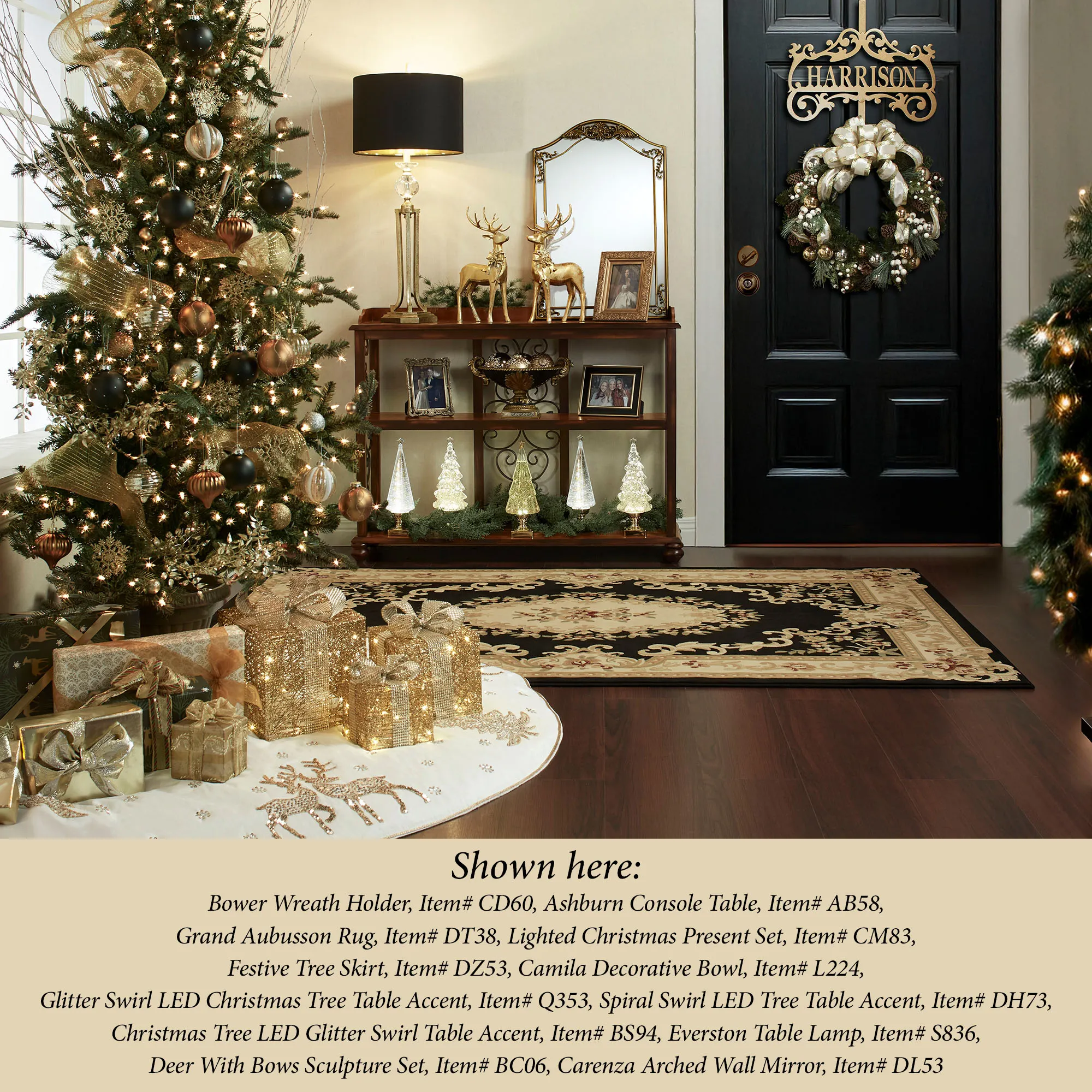 Faceted clear details lend a refined aura to the traditional stylings of the Everston Table Lamp. Flourishing with classic tastes, the aged gold lamp features a beveled resin base, openwork metal font, and glass orb and disc embellishments. A black cotton/polyester blend hardback shade tops the look with a metallic gold interior for a radiant glow. UL listed. Requires one 3-way 150W max. bulb. Overall, table lamp measures 16"dia.x38"H, including the 3"H cylinder finial.