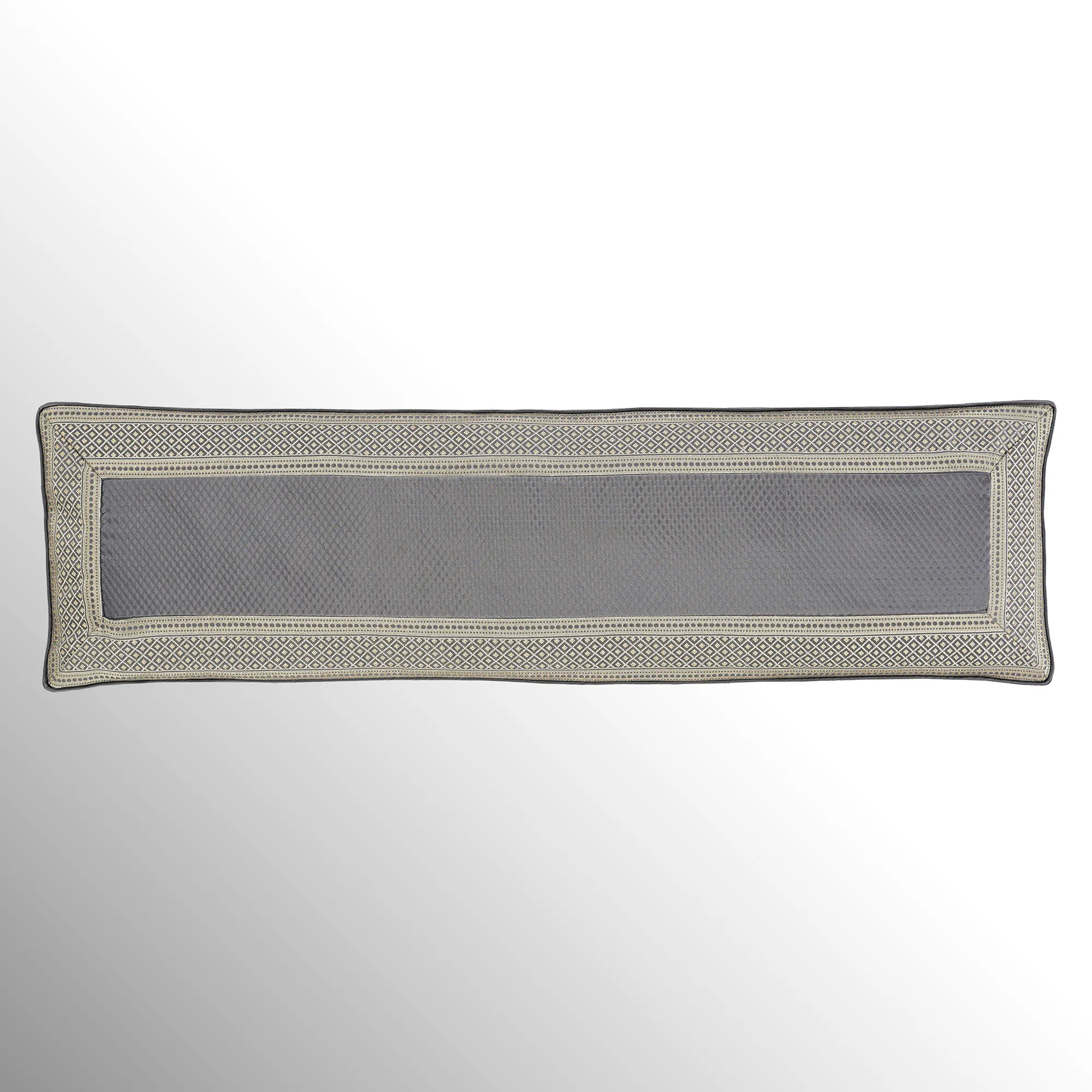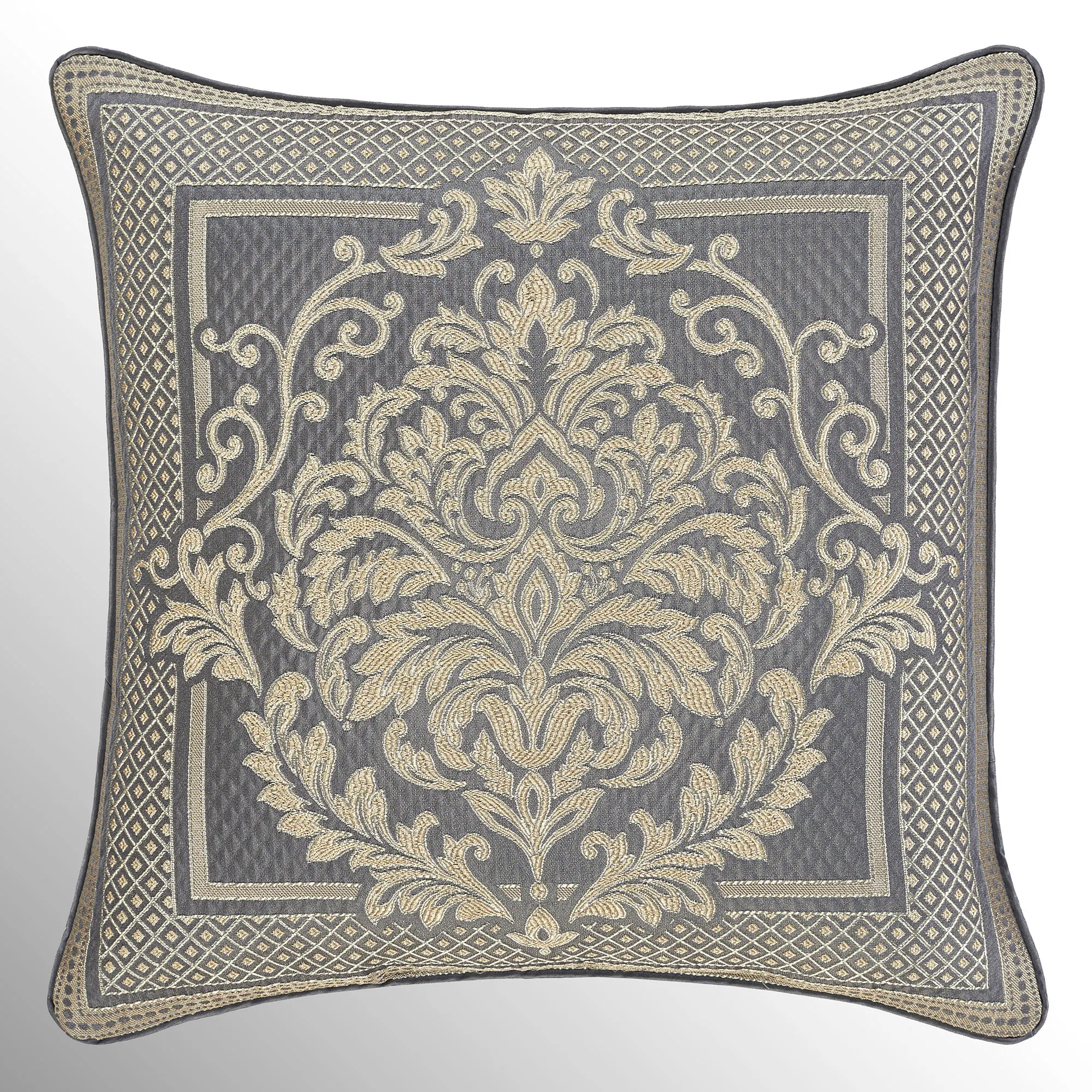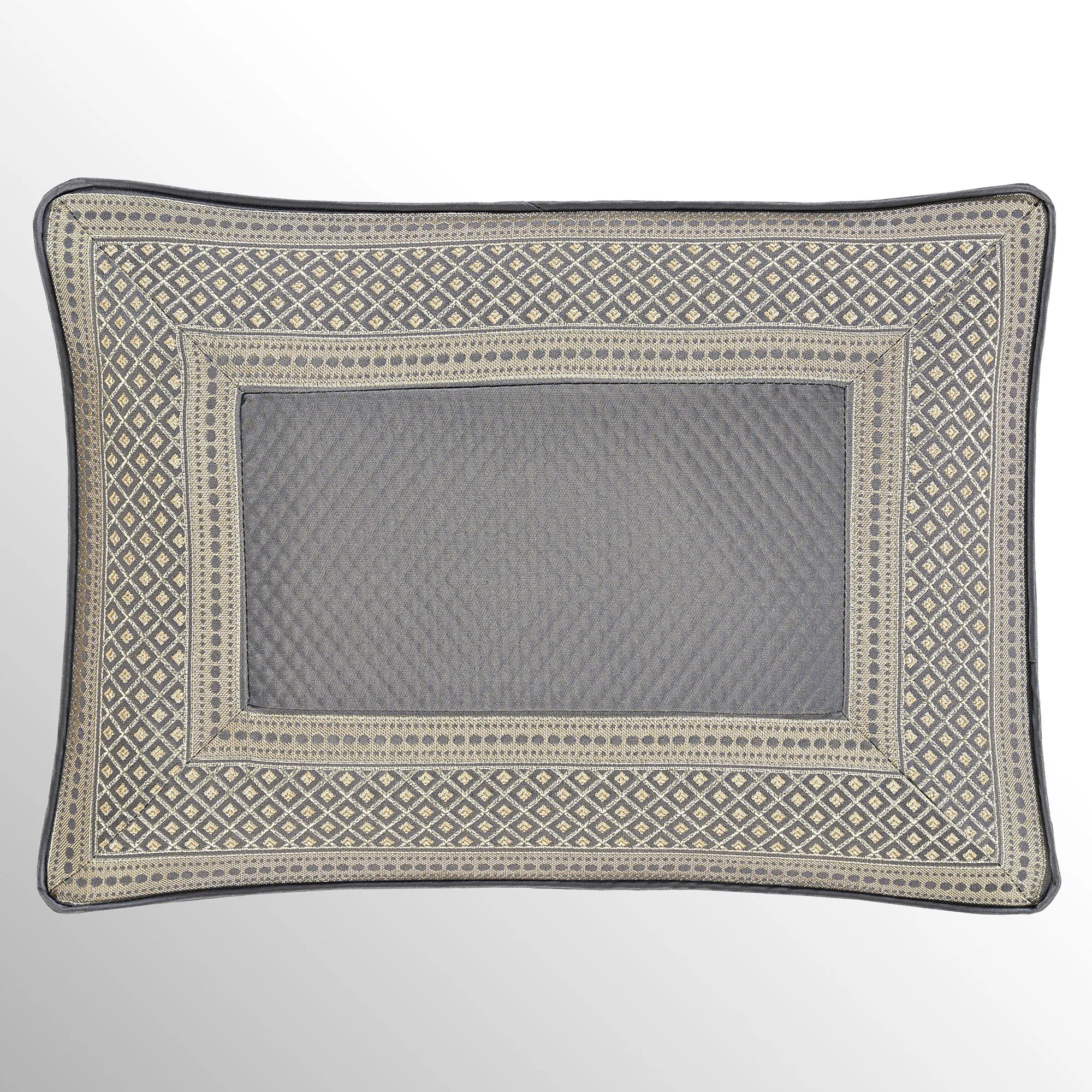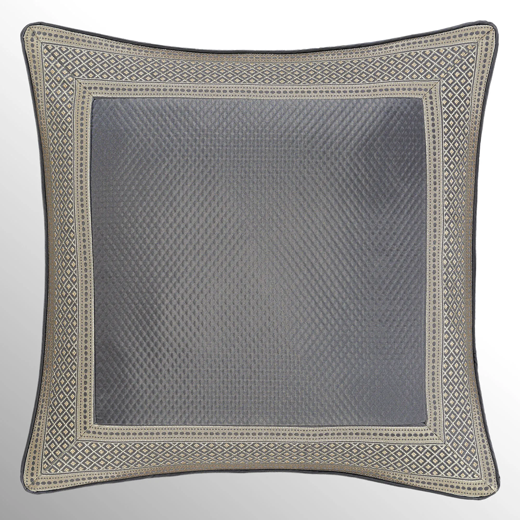 The piped European Sham has embossed diamond motifs, woven diamond and dot designs, mitred corners, and a zipper closure.