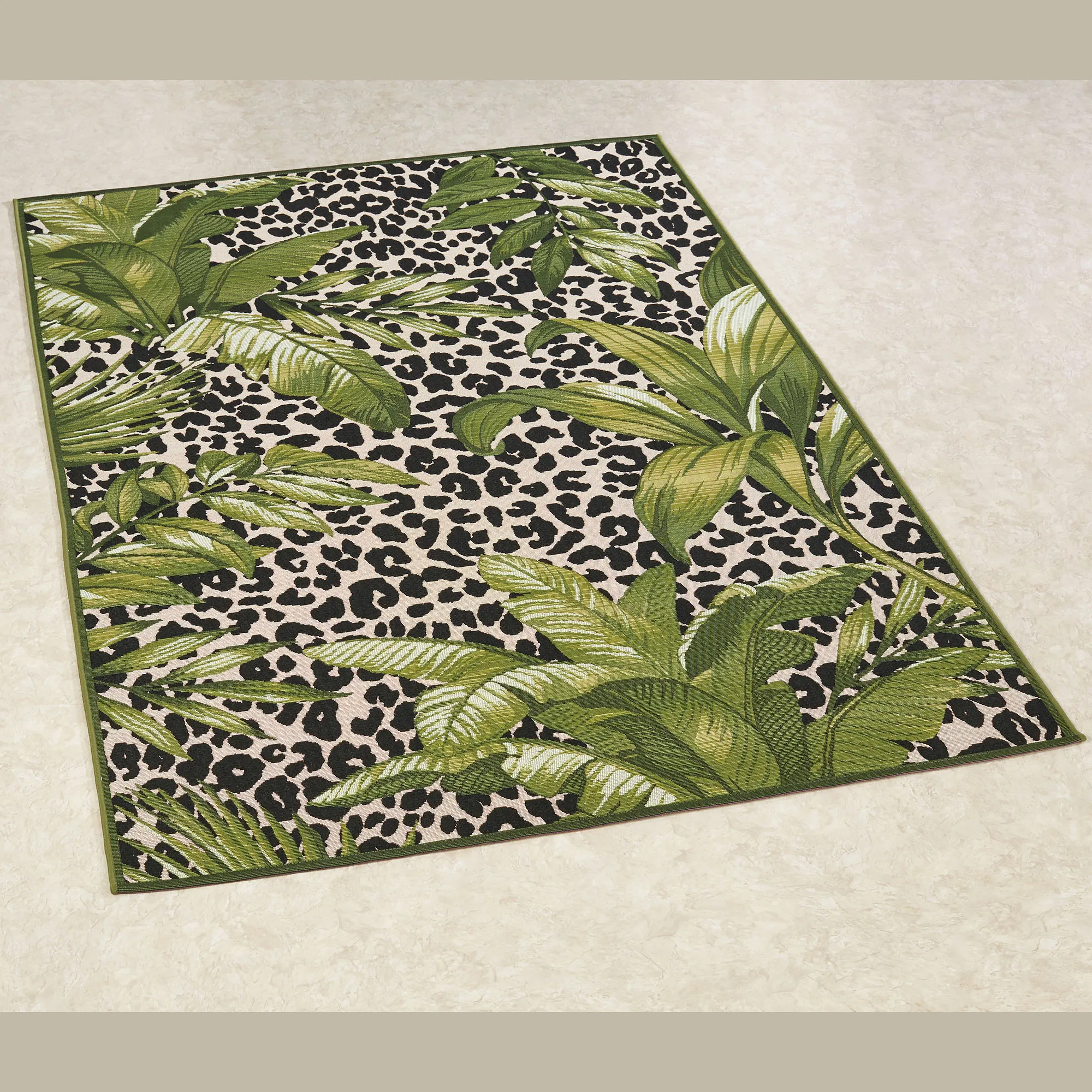 Exotic Safari Palm Leaf Leopard Print Indoor Outdoor Rugs