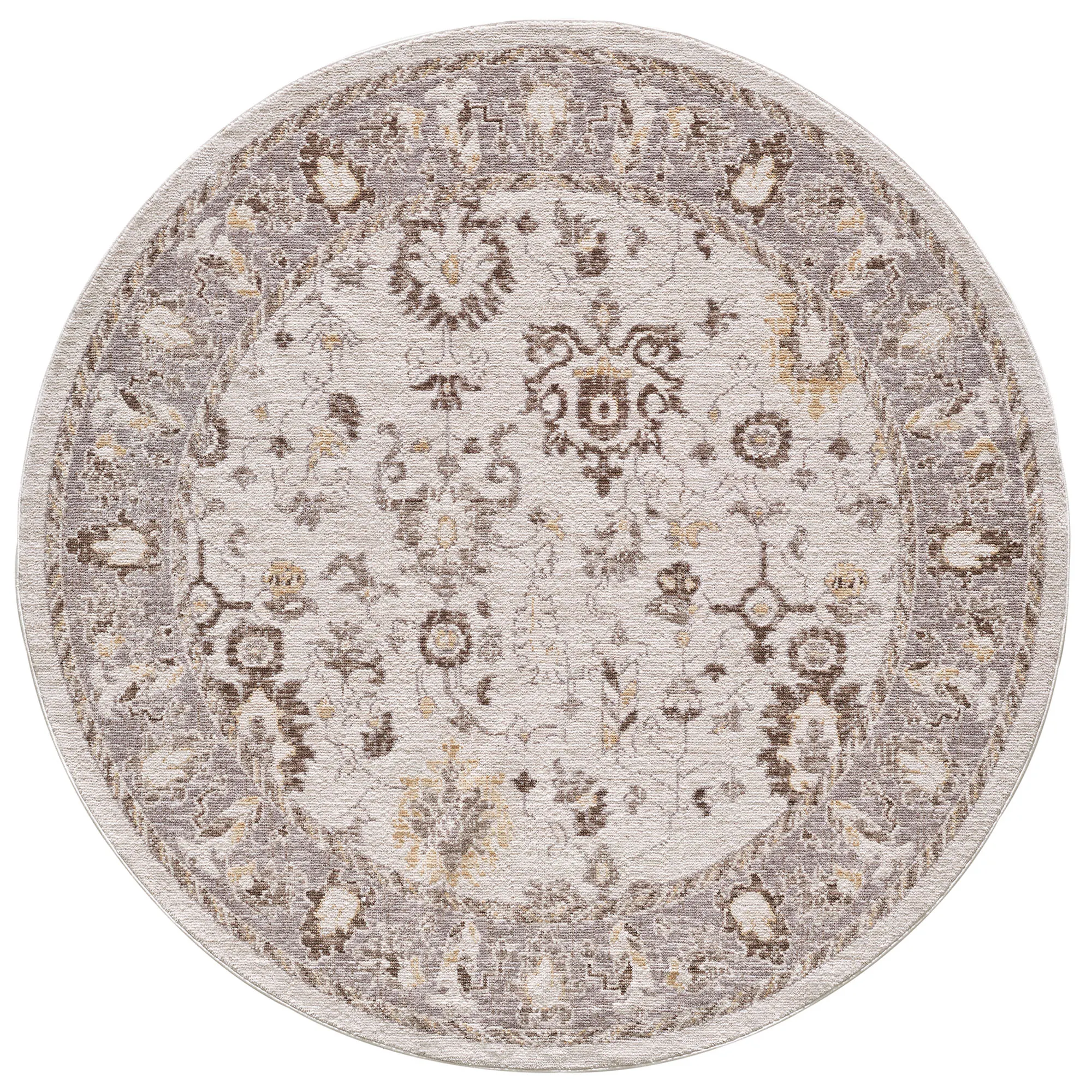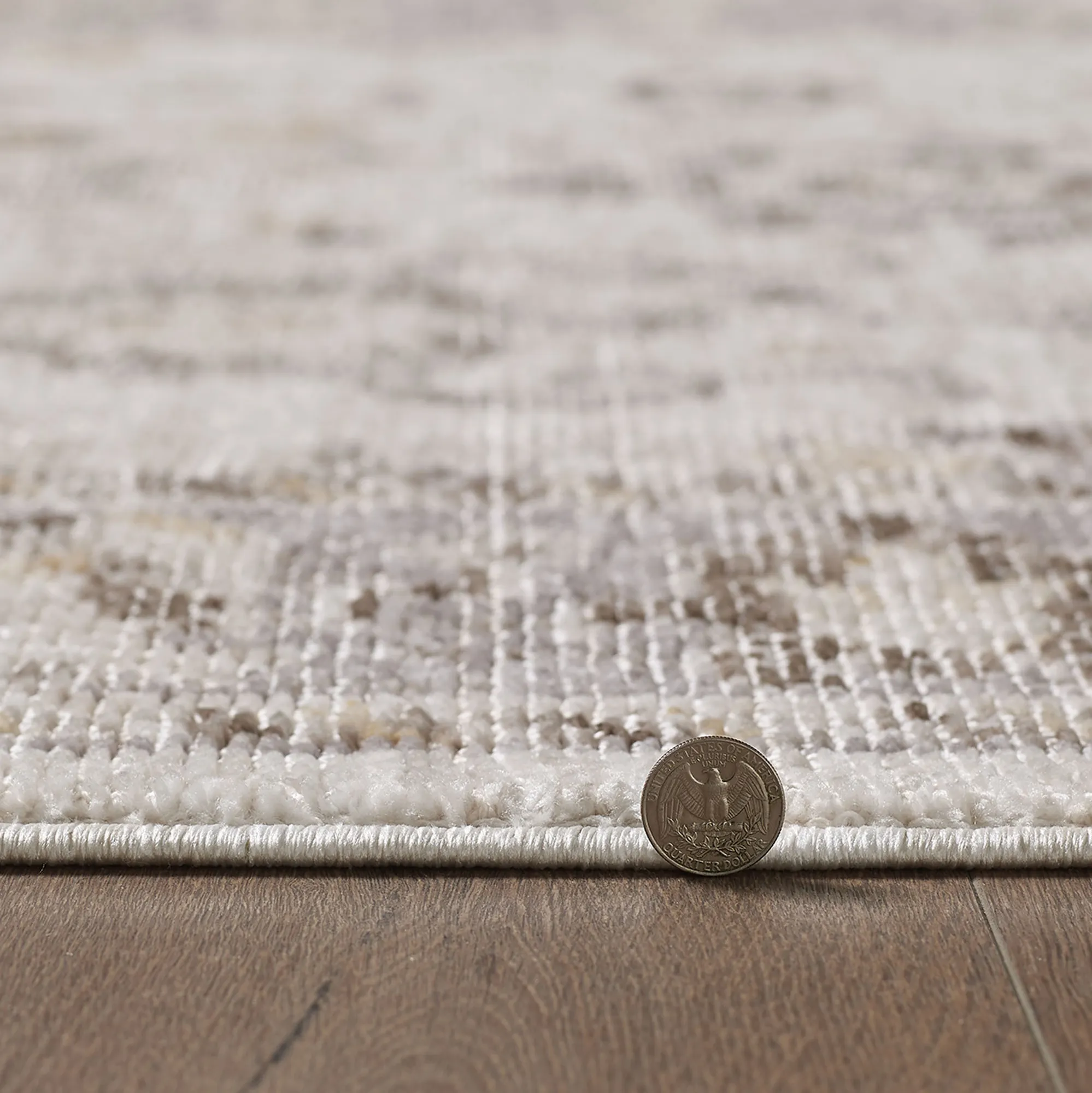 The Eyra Rug reflects classic style with its floral and medallion designs. This power-loomed polyester area rug is .5" thick and includes space-dyed shades of gray, parchment, ivory, maroon, and beige. We recommend professional cleaning by a rug cleaner. Imported.