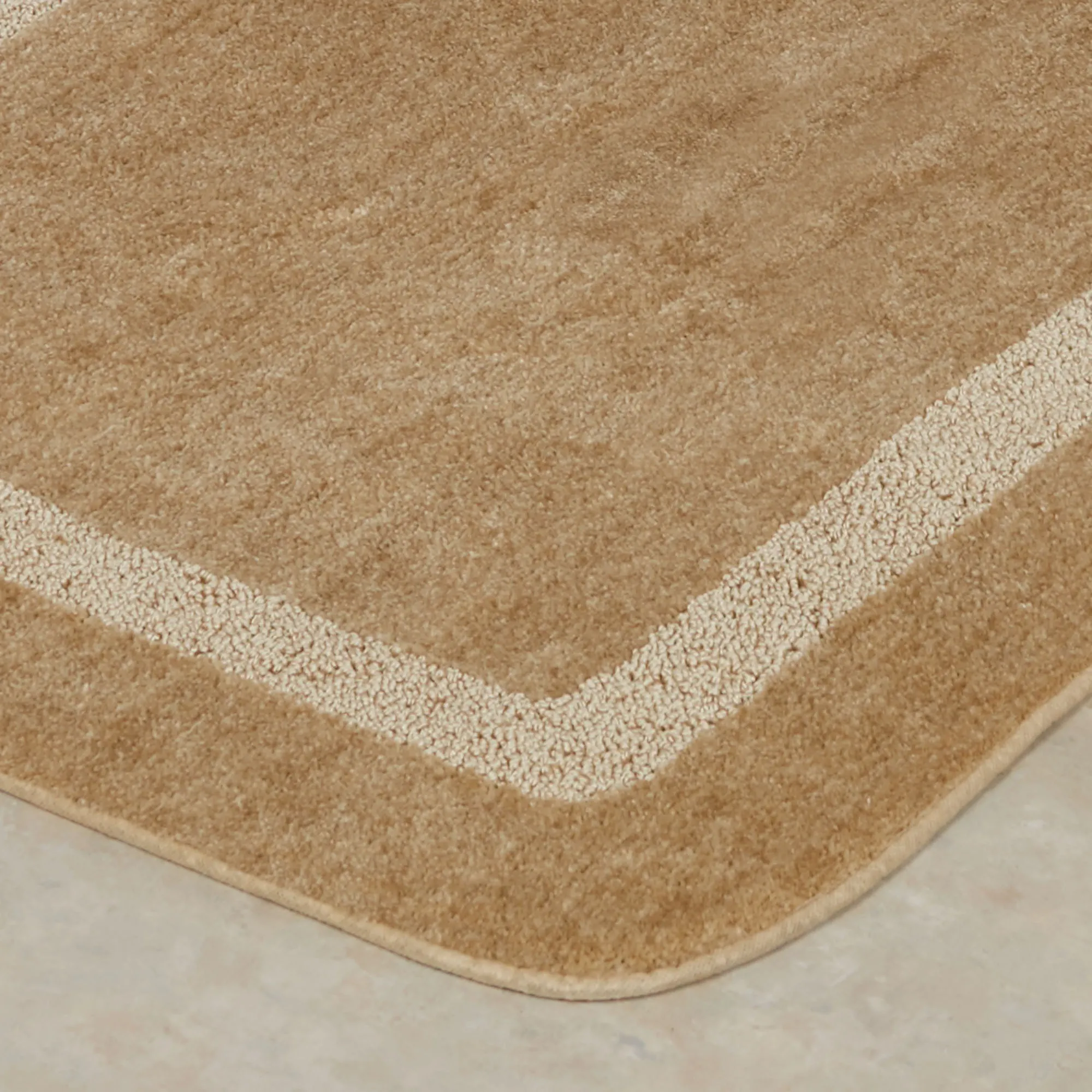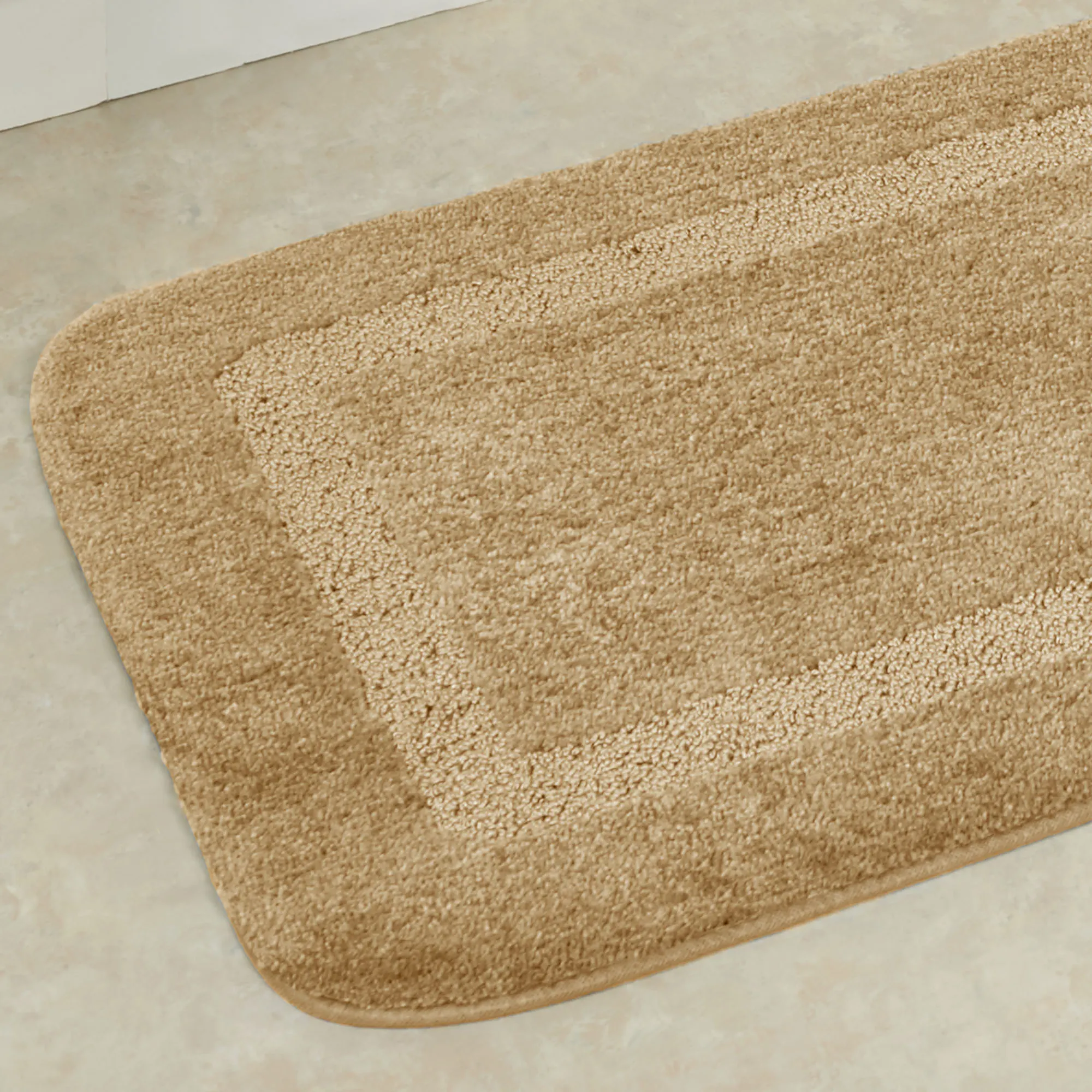 Complete your bathroom space with the smooth softness of the Facet Bath Runner and Accessories. The .25" thick nylon rugs feature a plush soothing solid color in a machine-tufted cut pile. Rugs are backed in slip-resistant latex. A subtle looped border finishes all except the lid cover. Runner is 1'8"x5' (20"x60"). Bath Rug is available in three sizes. Contour Mat is 20"x24"; cutout measurement is 8"Wx7"D. Specify Almond, Aqua, Celadon, Chocolate, Gray, Merlot, or Plum. Machine washable.