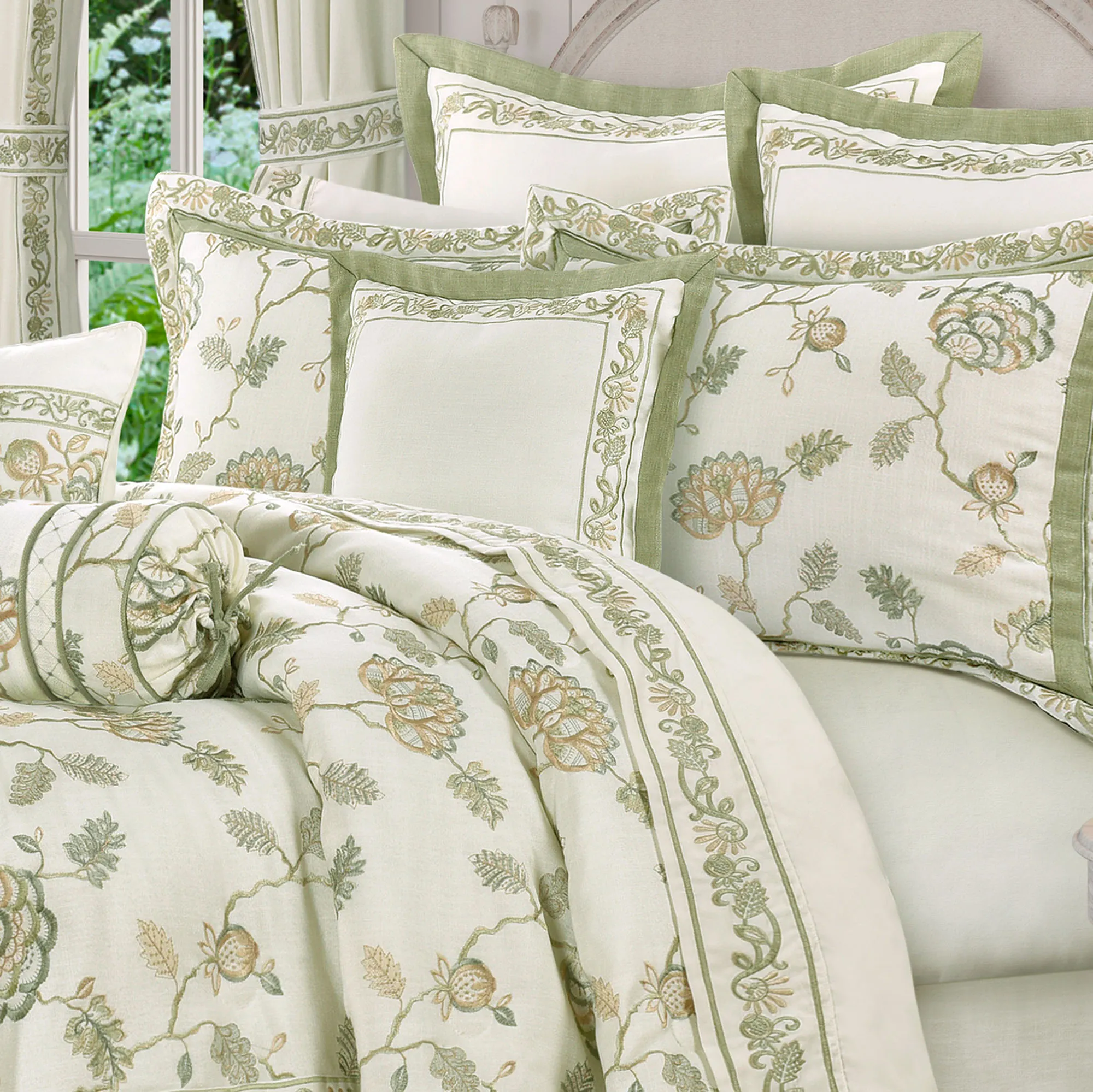 Fairview Sage Embroidered Floral Comforter Set Luxury Bedding by J Queen New York