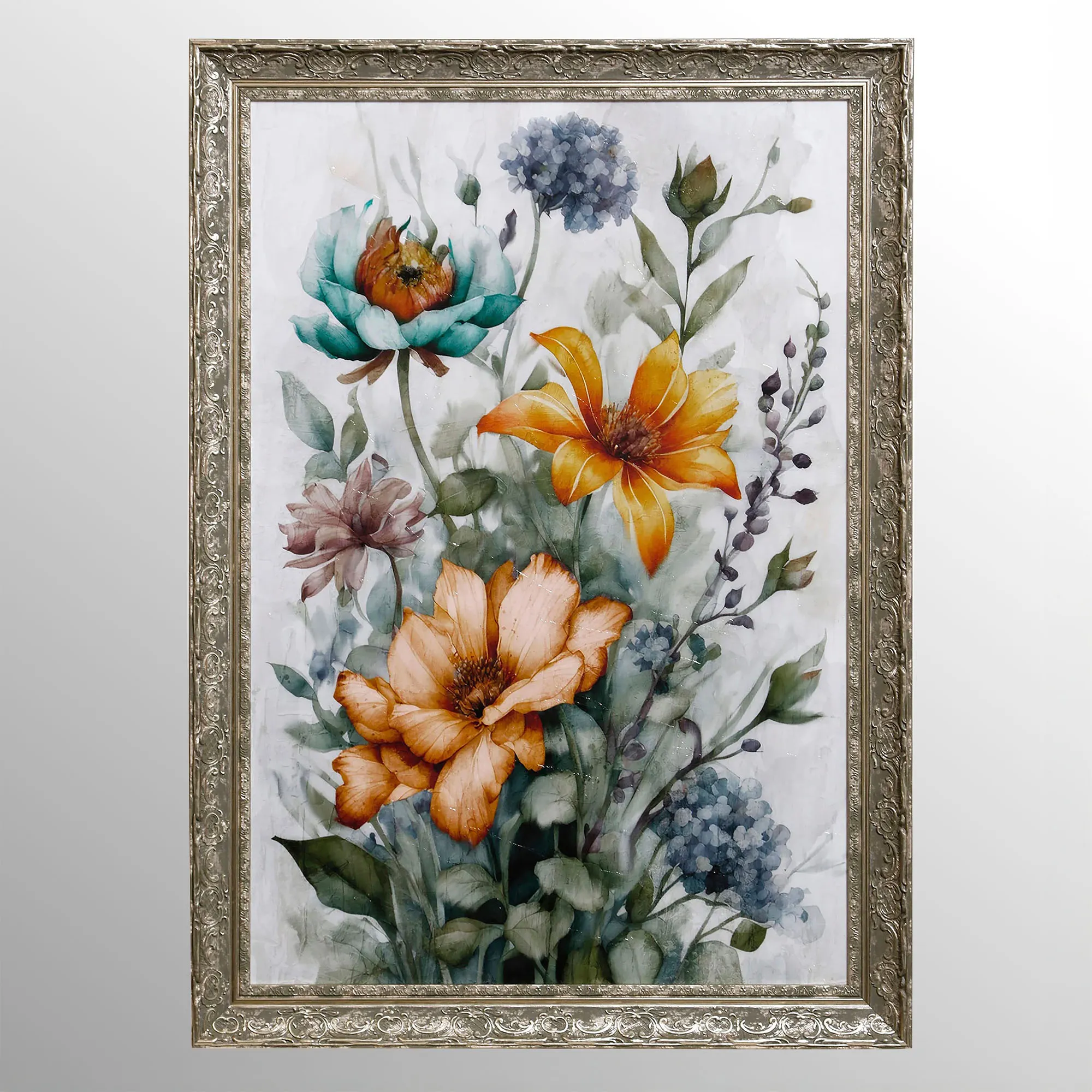 Fall Floral Whimsy Champagne Silver Framed Wall Art
