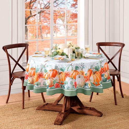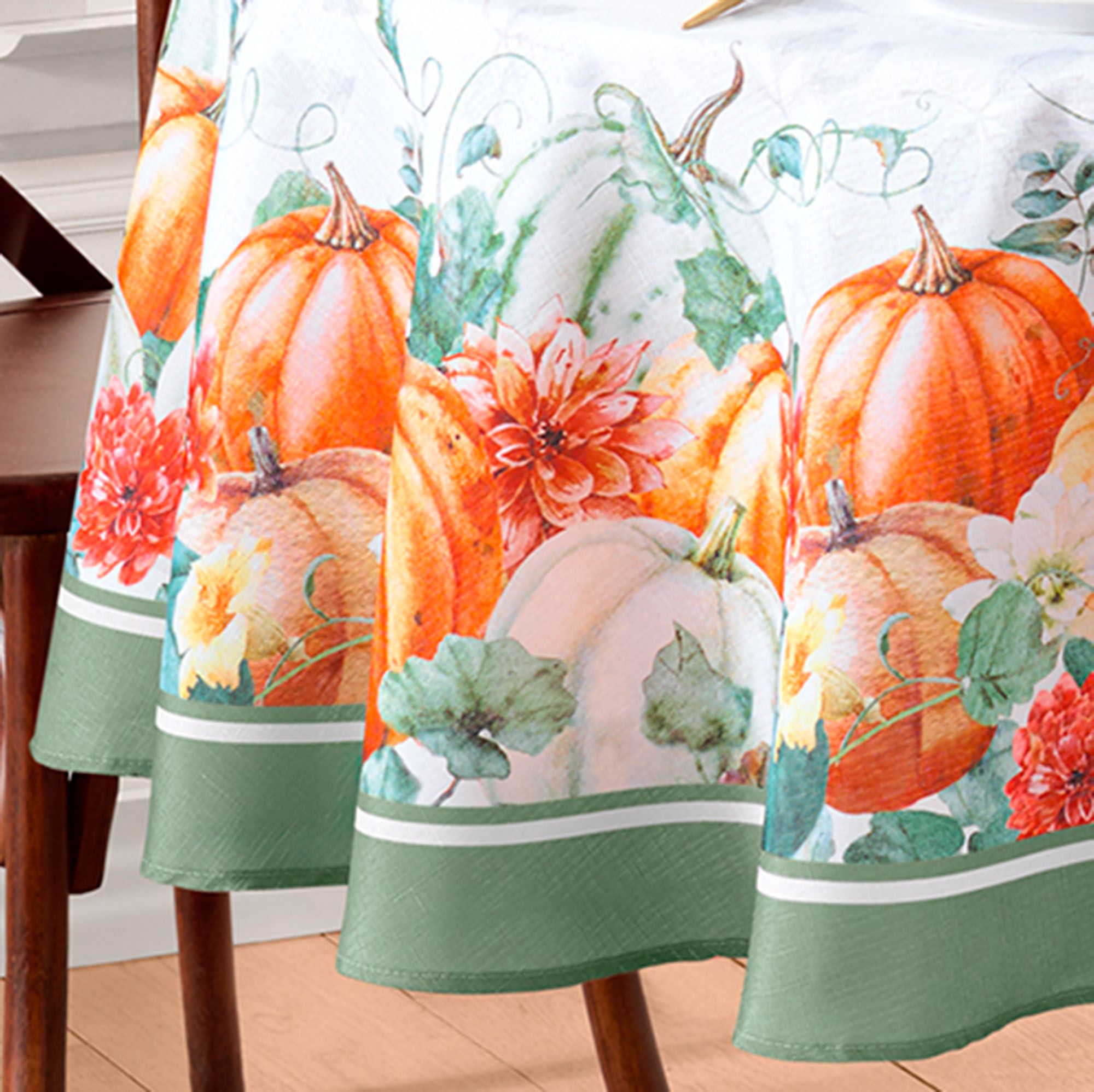 Fall Flourish Pumpkin Round Tablecloth and Table Linens
