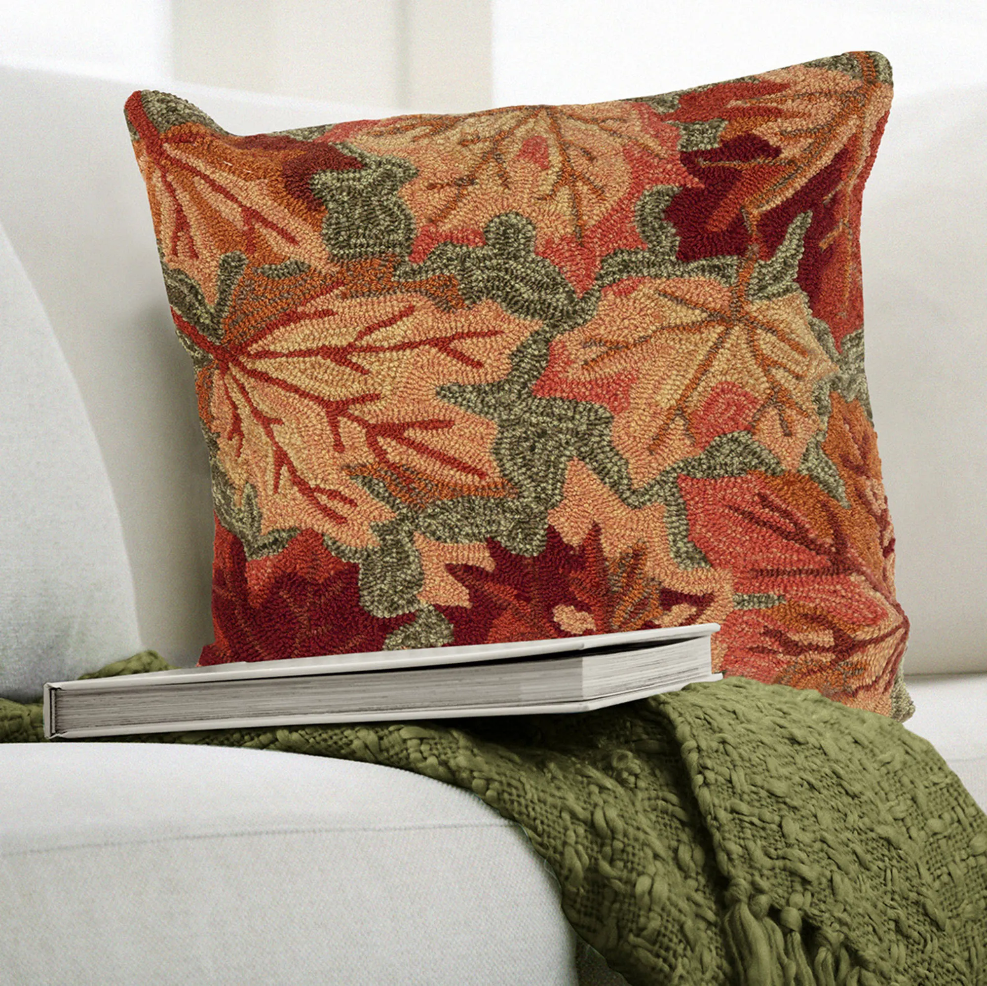 The Falling Leaves Pillow is polyacrylic backed in polyester; insert is polyester. Imported.