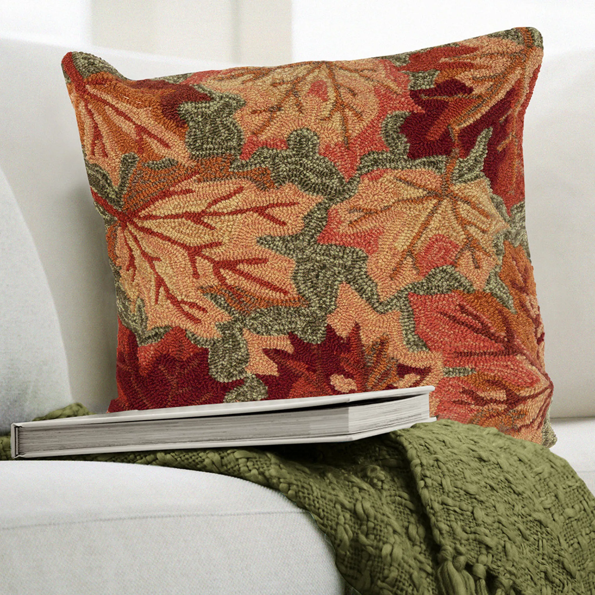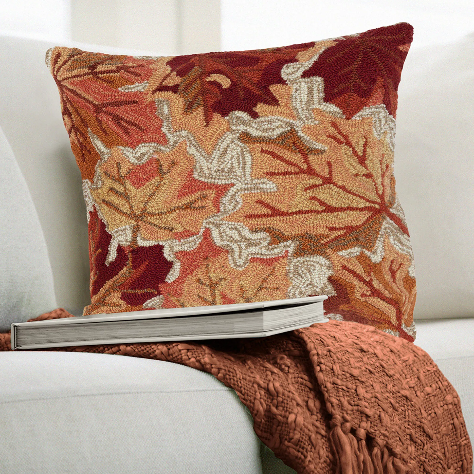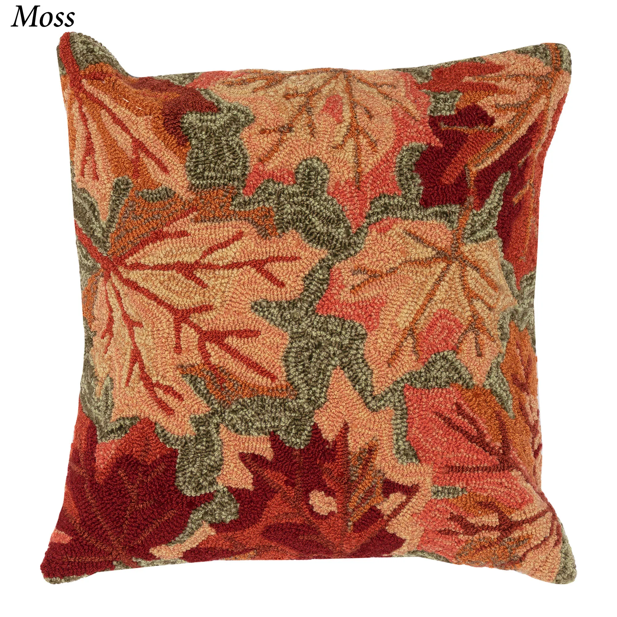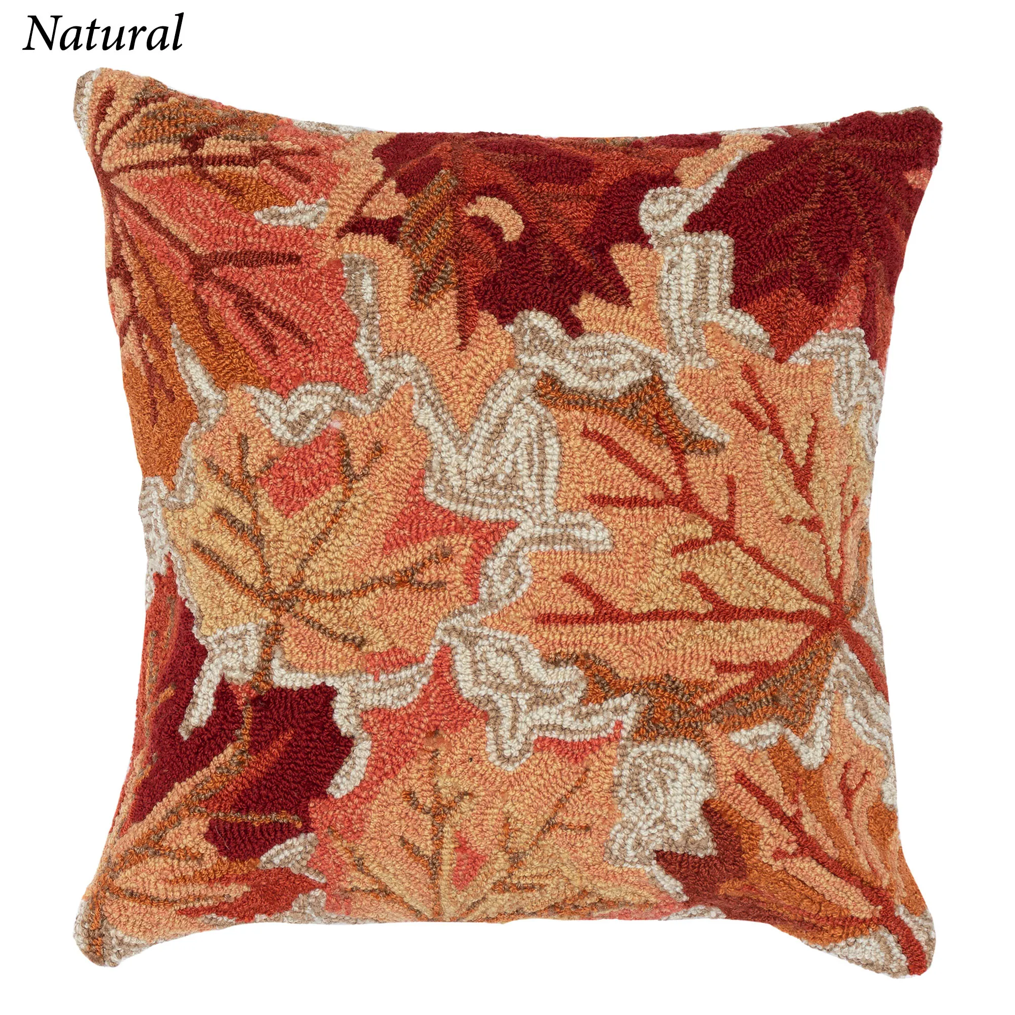 The Falling Leaves Pillow adorns your indoor or outdoor space with autumn beauty. Designed by Liora Manne, the Everywear(TM) square decorative pillow features a UV-stabilized, weather- and fade-resistant, hand-tufted polyacrylic design that features lovely warm-hued fall leaves. With a durable hidden zipper closure, the removable pillow cover is backed in gray polyester. For indoor or outdoor seasonal use; do not expose this pillow to freezing temperatures. Square pillow measures 18". Insert is polyester. Hand wash the cover; spot clean the insert. Imported.