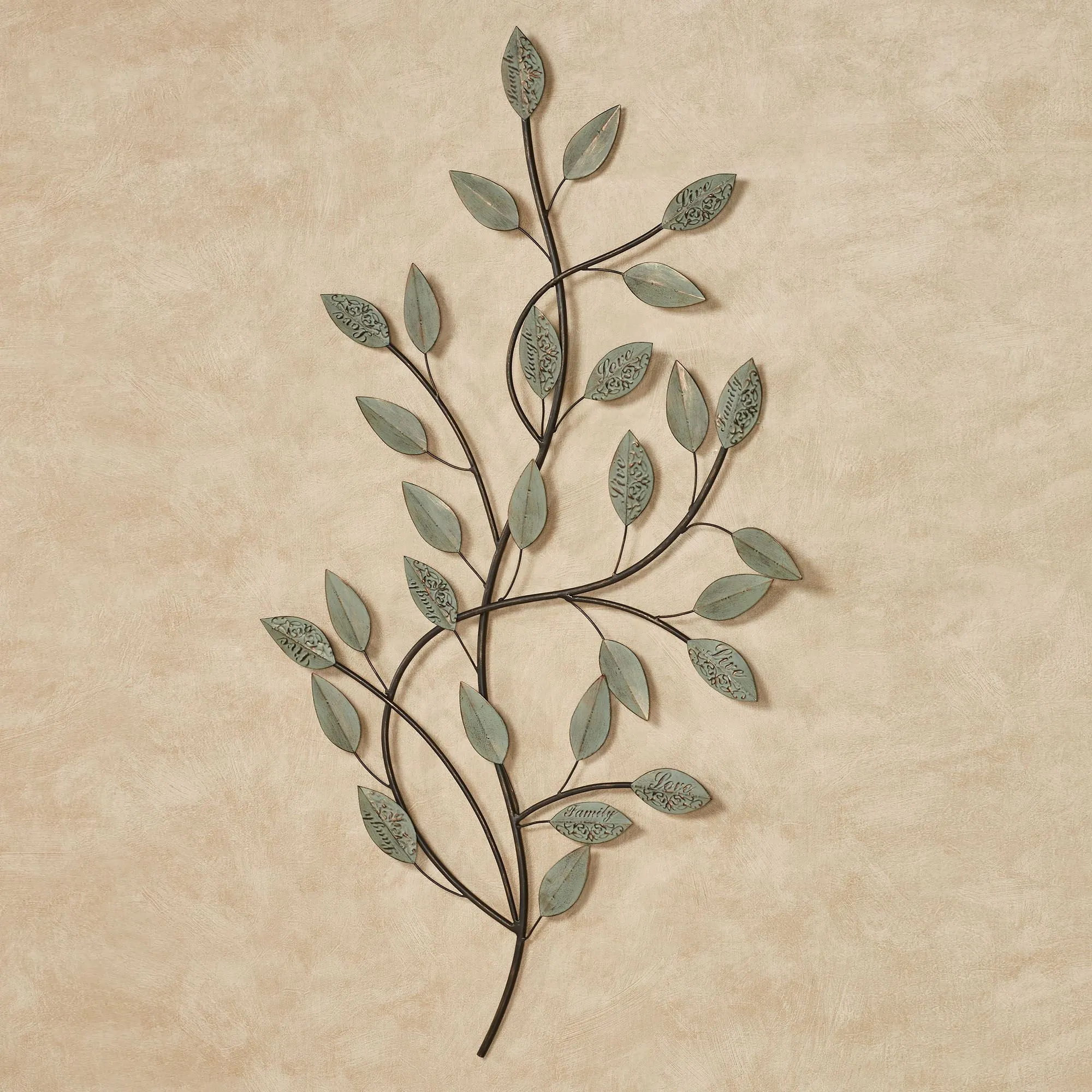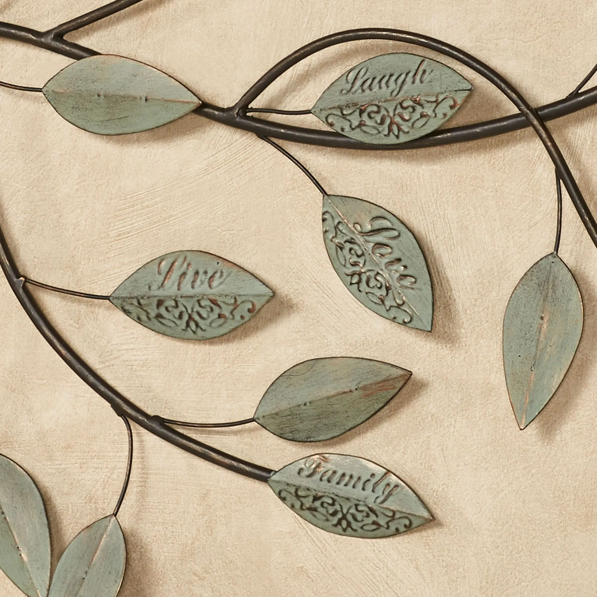 Family Tree Branch Nature-Inspired Metal Wall Art Sculpture with Sentiment Embossed Leaves