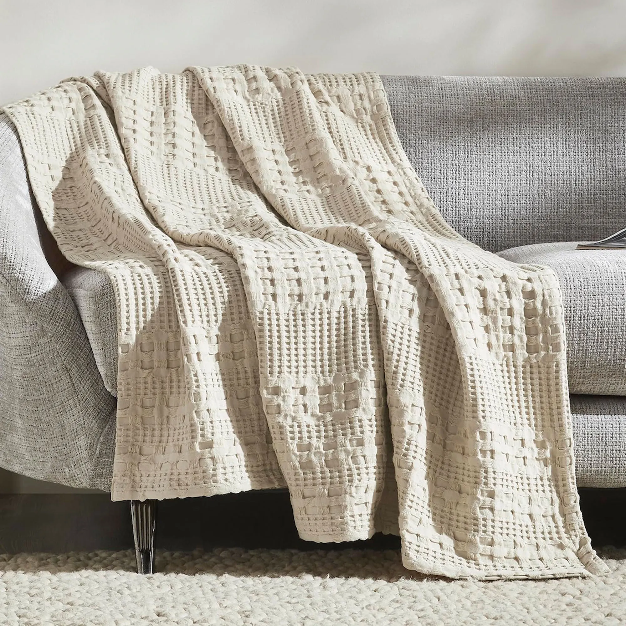 Farmhouse Waffle Weave Cotton Throw Blanket by April & Olive