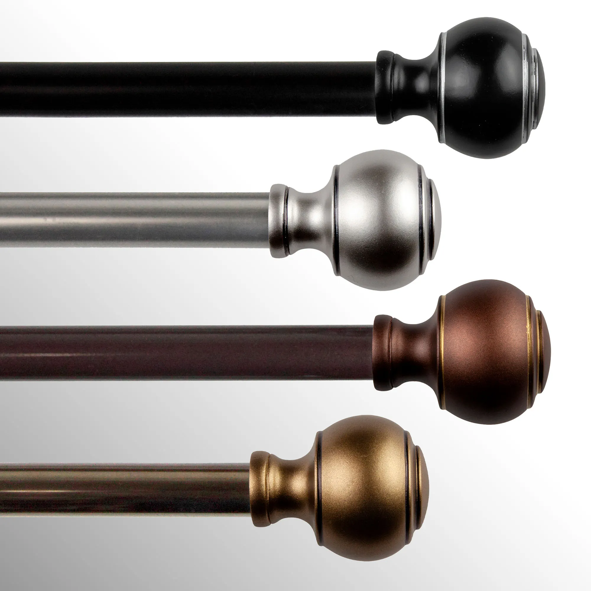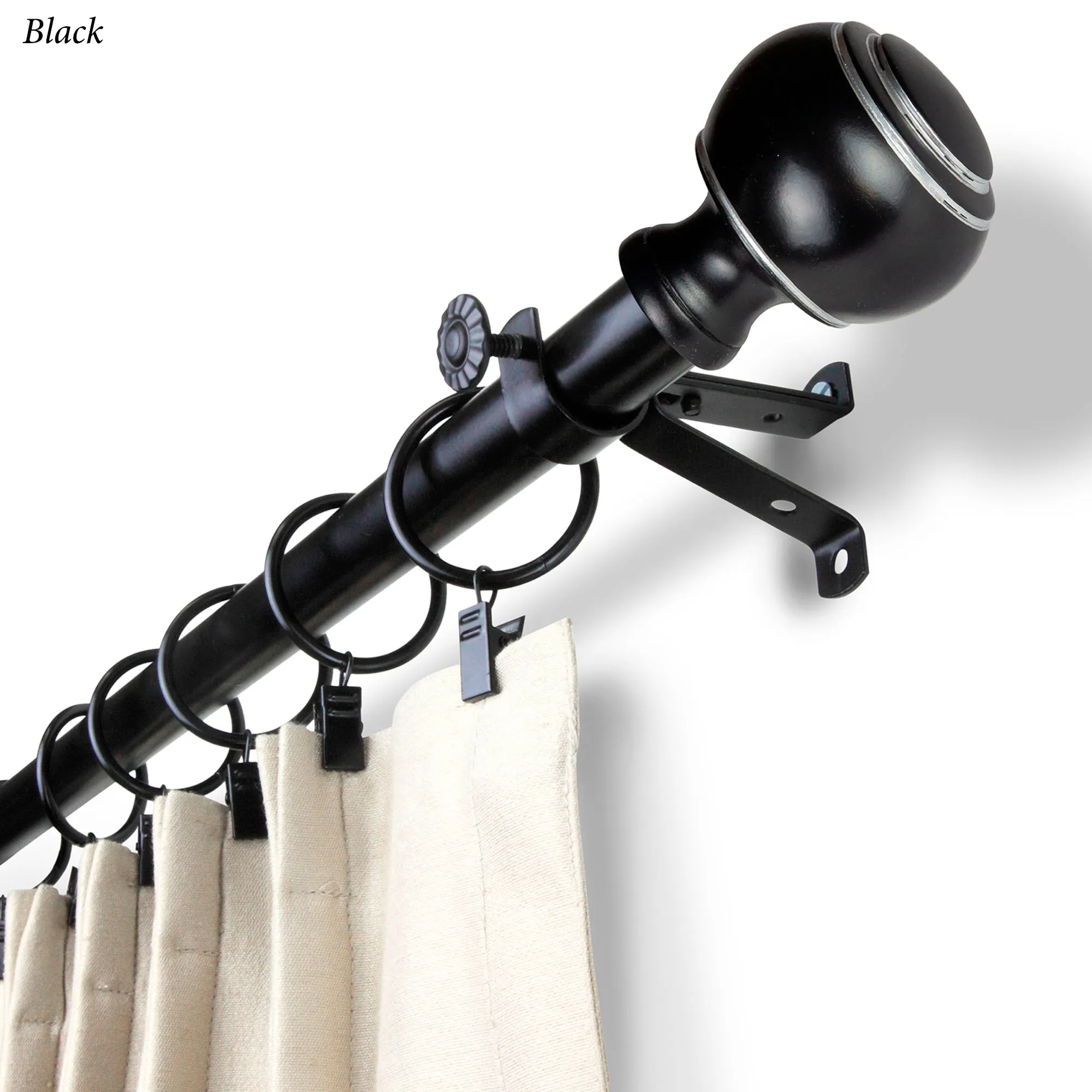 The Farrar Rod and Finial Set is steel with resin finials.