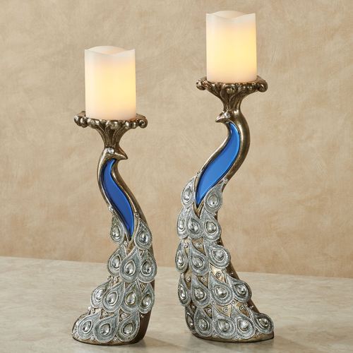 Feathered Splendor Peacock Candleholders Blue Set of Two