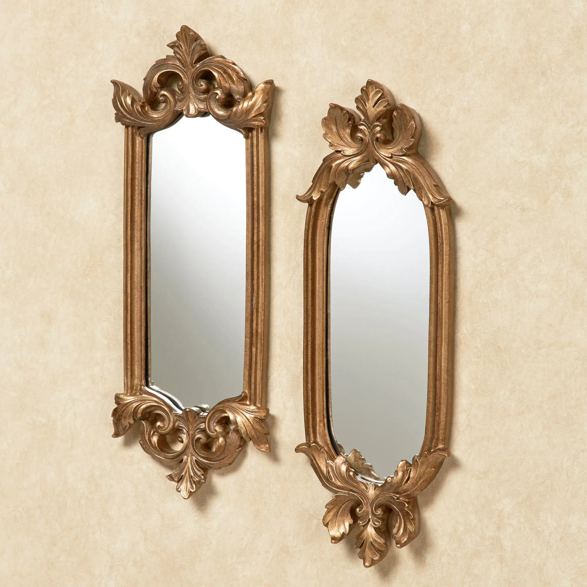 The rich appearance of the Felissia Accent Wall Mirror Set makes any wall look regally elegant. These resin wall mirrors have a stunning satin gold finish and acanthus leaf accents. Each is approx. 6.5"Wx1.5"Dx16"H.